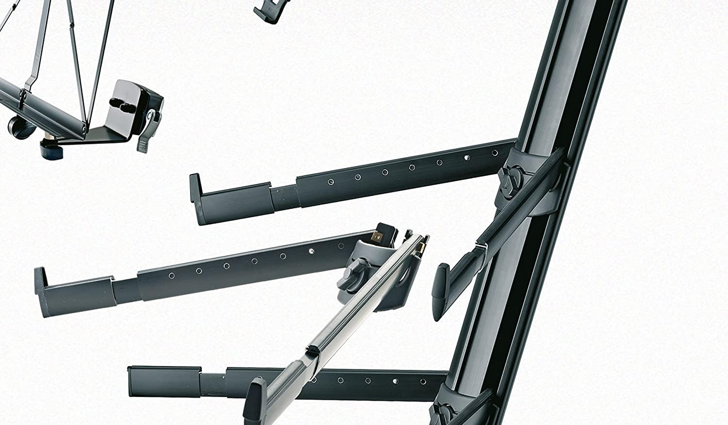 TRUSTED DESIGN: Lightweight aluminum frame creates a stable base with room for pedals while extendable arms with a 15° tilt angle secure a pair of keyboards up to 77lbs per tier and 11.8”-18.5” of depth. Adjust the height up to 51.5” to comfortably play.