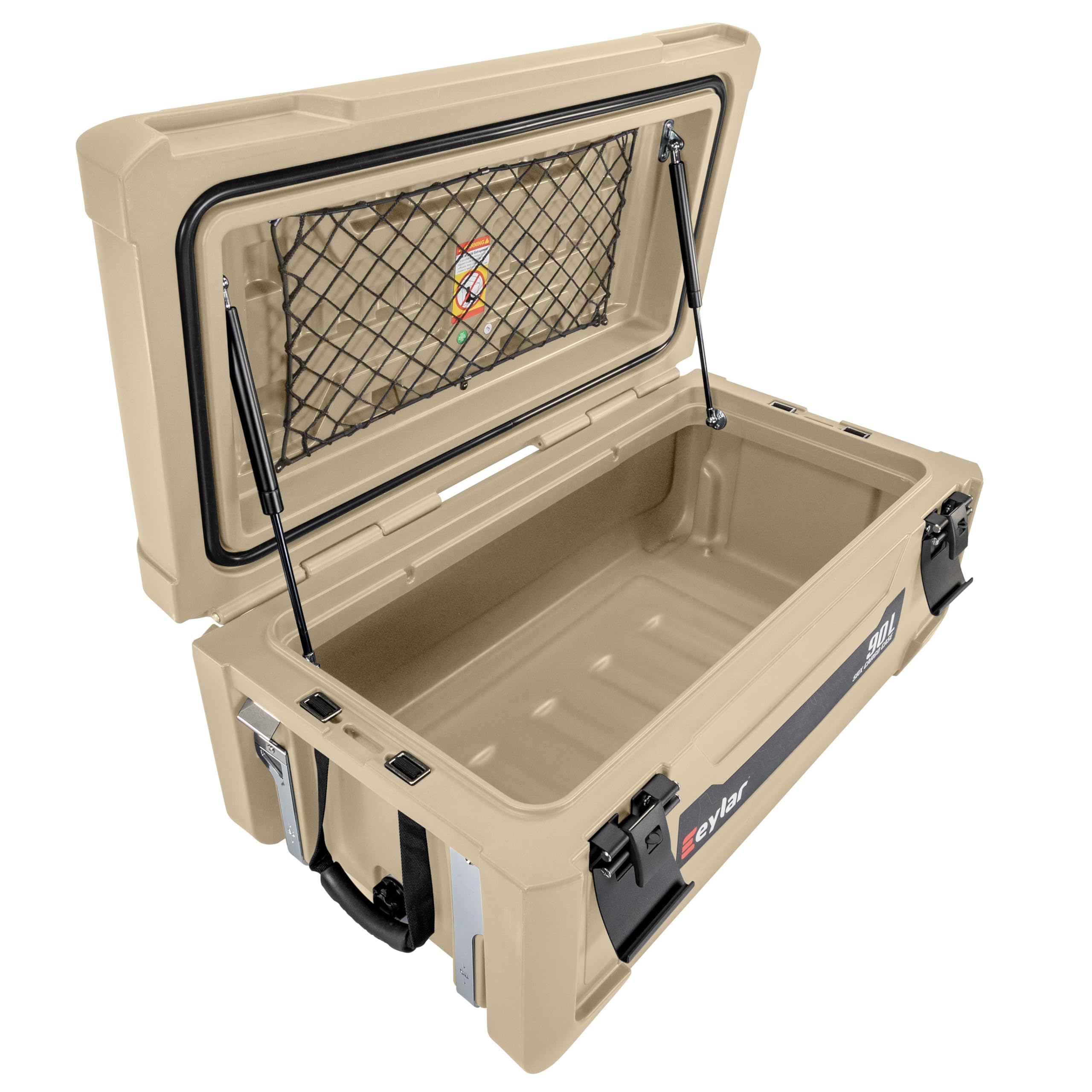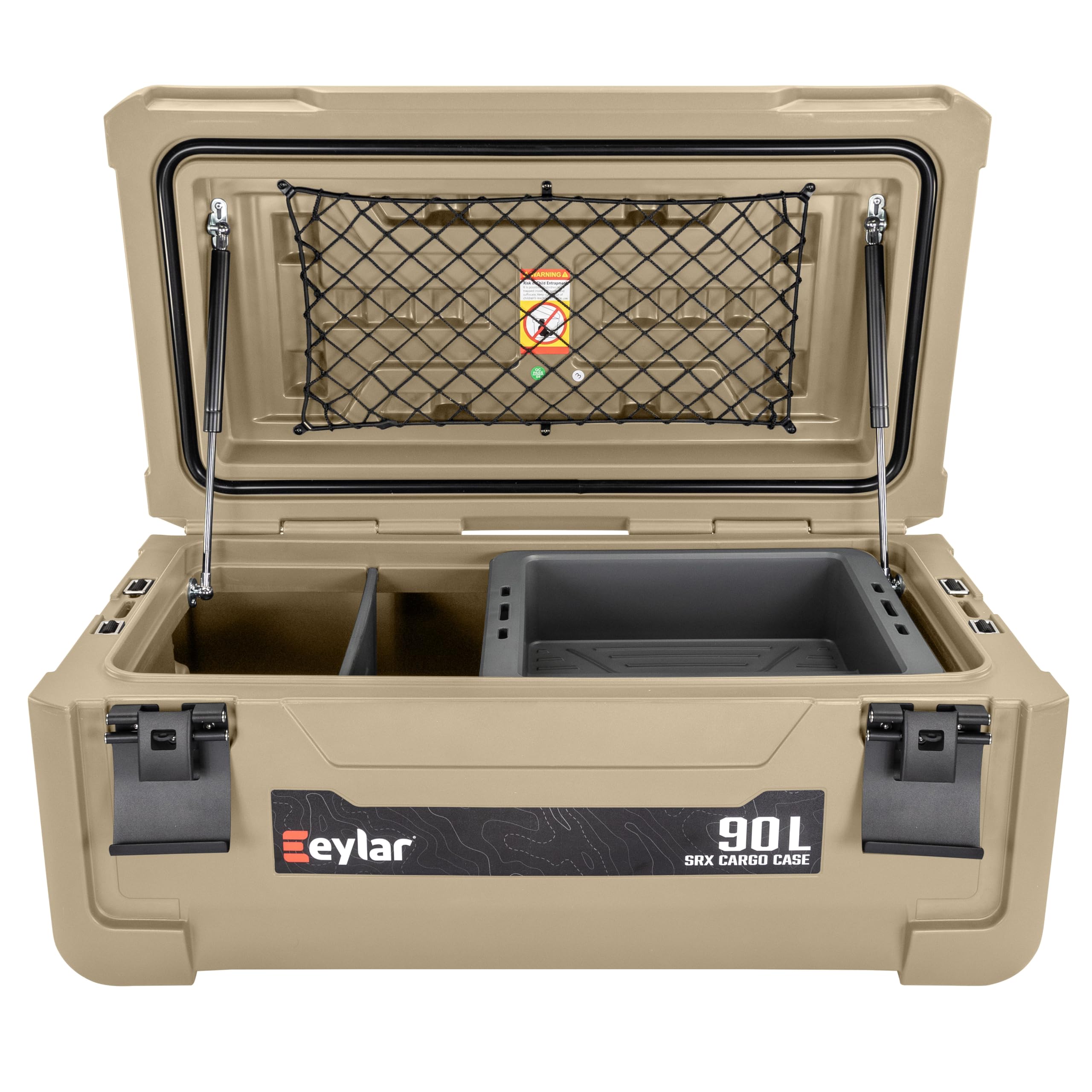 SRX-90 Overlanding Cargo Case – 90L Waterproof Storage Box for Camping, Off-Road & Truck Bed Gear – Heavy-Duty Lockable Storage with Gas Strut Lid, Stackable Design & Interior Organizer Tray (Tan)