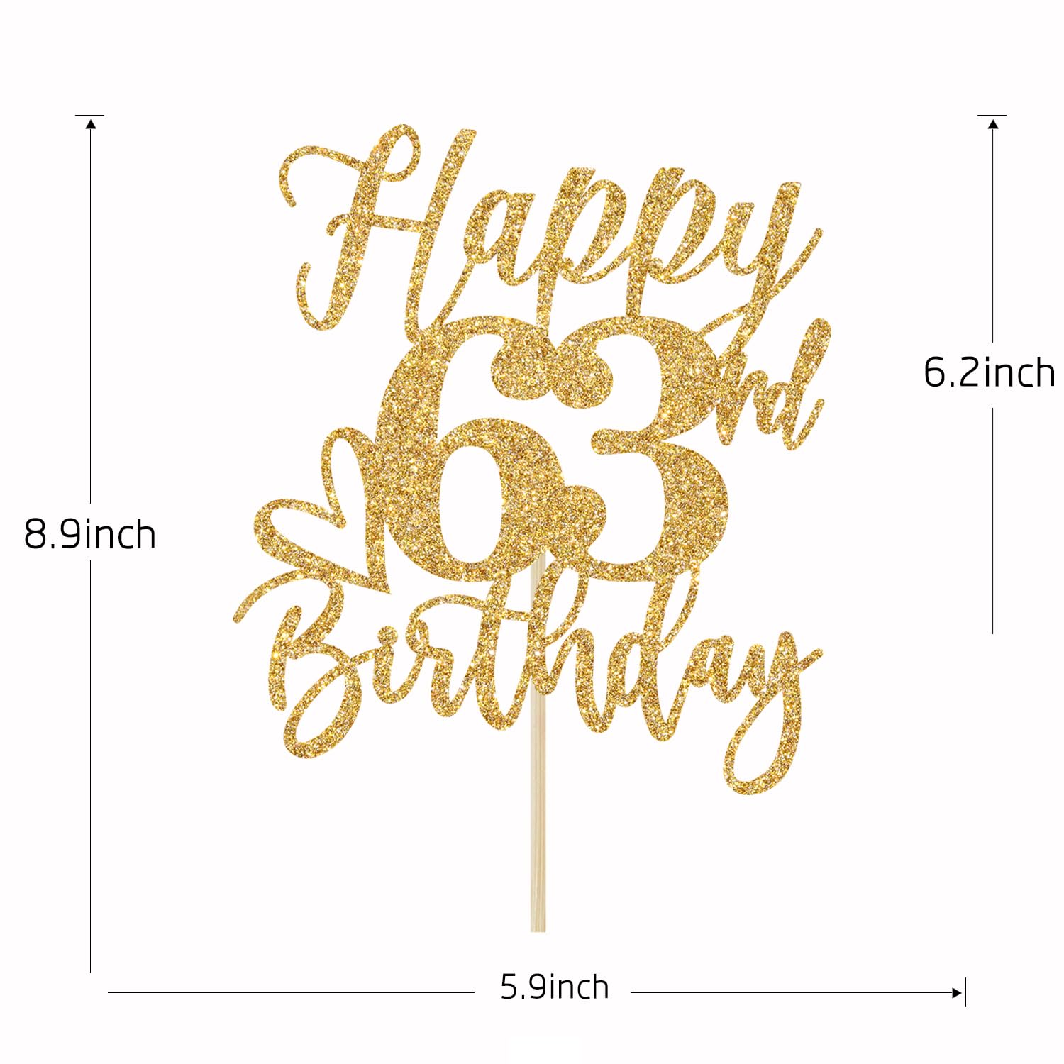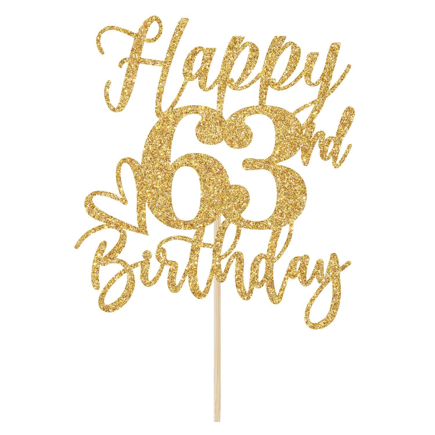 Happy 63rd Birthday Cake Topper It made of quality the glitter paper and toothpicks which are safe for use. They are great anniversary themed party cake toppers, to make the cake looks much more different. The cute cake toppers also can be used as cupcake picks, appetizer picks, fruit picks, or party food picks, etc. This classy luxurious cake topper is a great choice to decorate for your party idea. It is perfect for party celebrations! Used as a photography prop, it will be sign to take photo in your party.