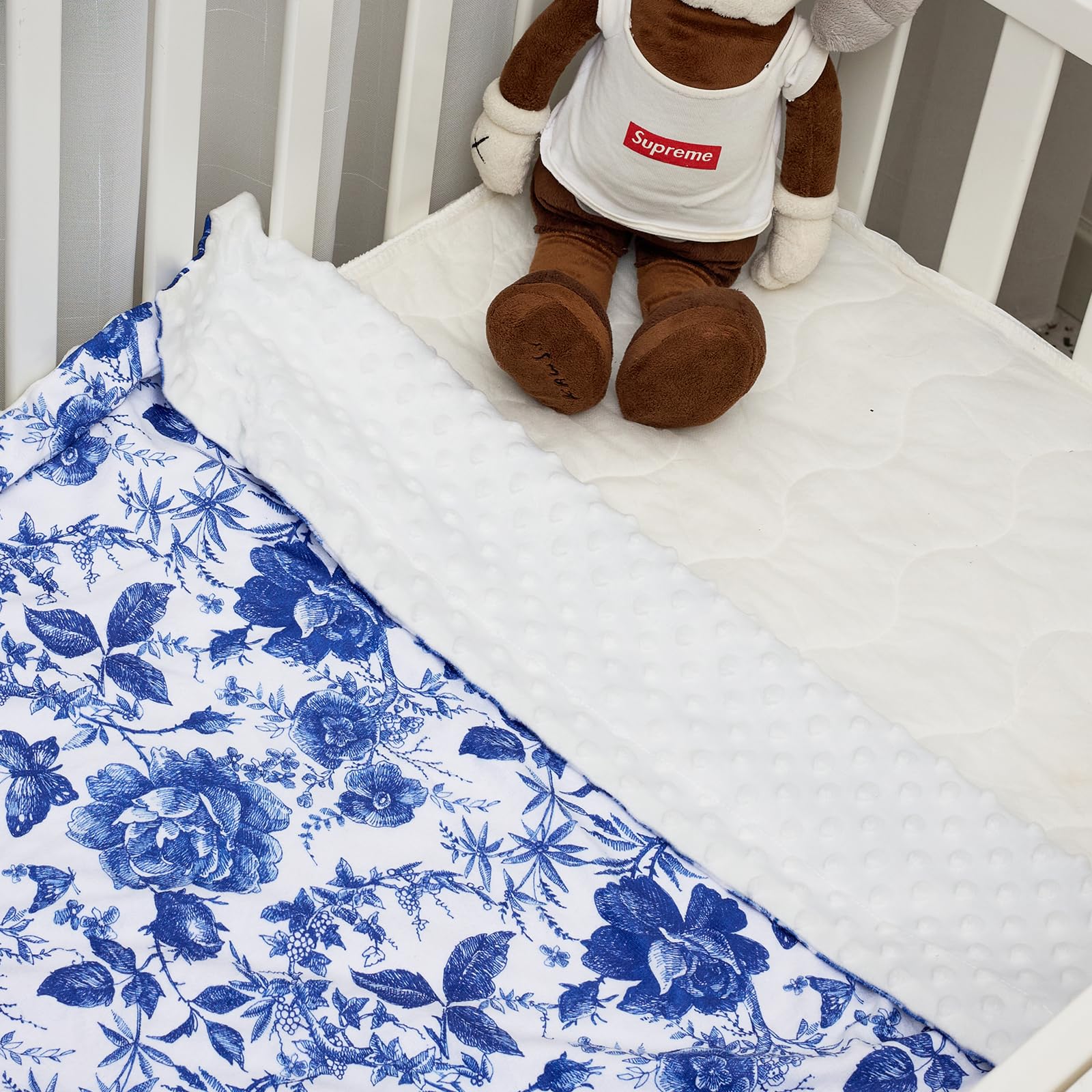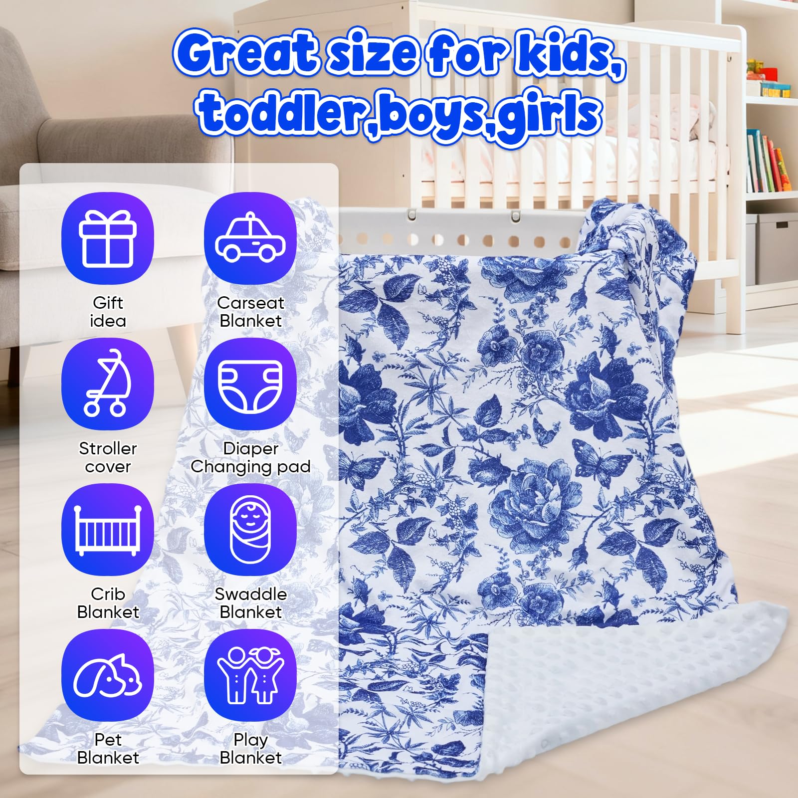 【Unique Design】 Baby Blanket for Girls double layers design can keep your baby warm in cold weather and it is right weight without being too havy to be hot. Besides, the design allows it to be used in both sides, the minky side can be used for wrapping your little one keeping your baby warm in winter. The other side has three-dimensional dots that can pacify your baby like gentle caressing from a mother, and help your baby fall asleep quickly.