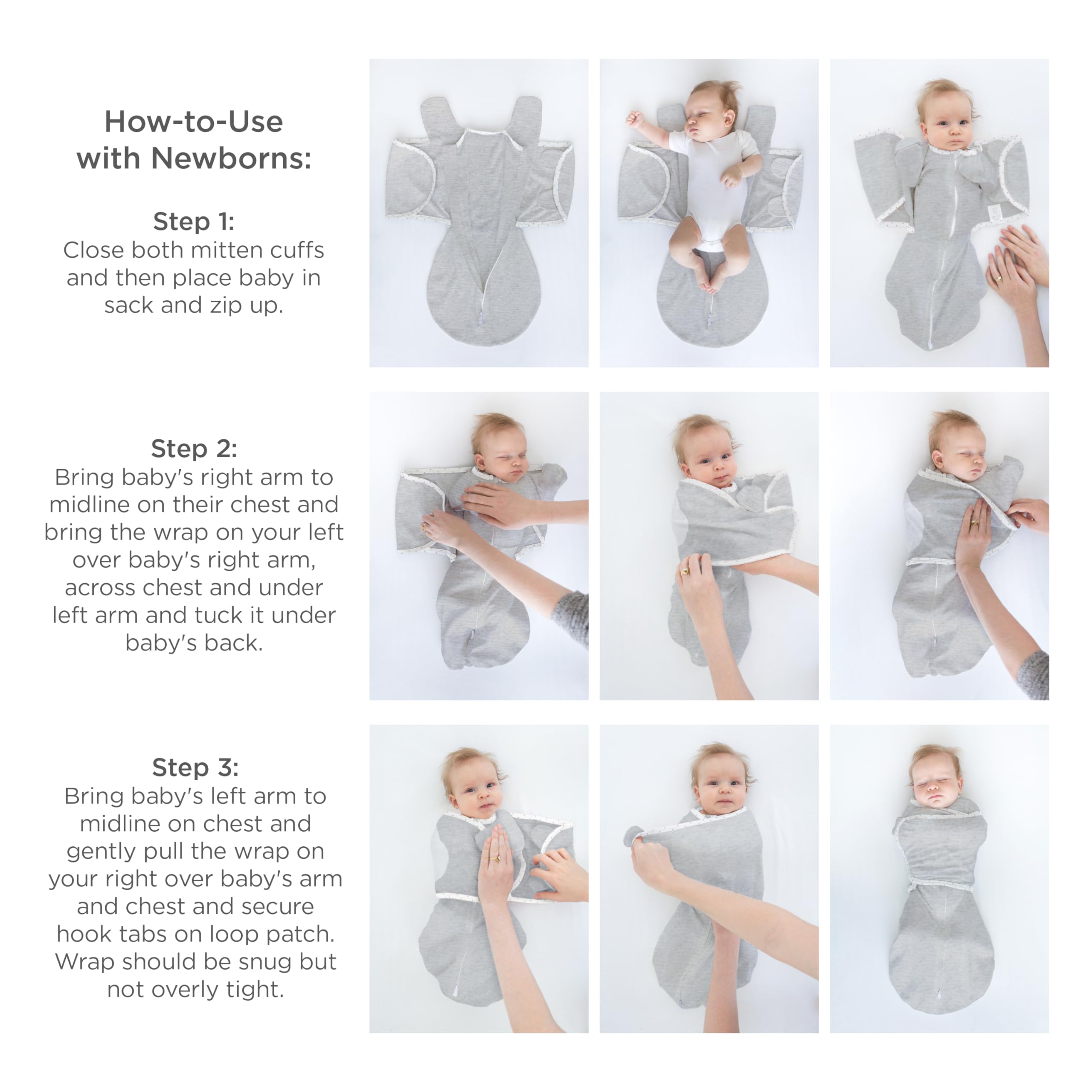 LITTLE SLEEVES with BIG PURPOSE; The 1/2-length uniquely shaped sleeves with foldover mitten cuffs closed provide partial suppression of Startle Reflex to help baby SLEEP BETTER if parents swaddle with one or two arms outside the wrap