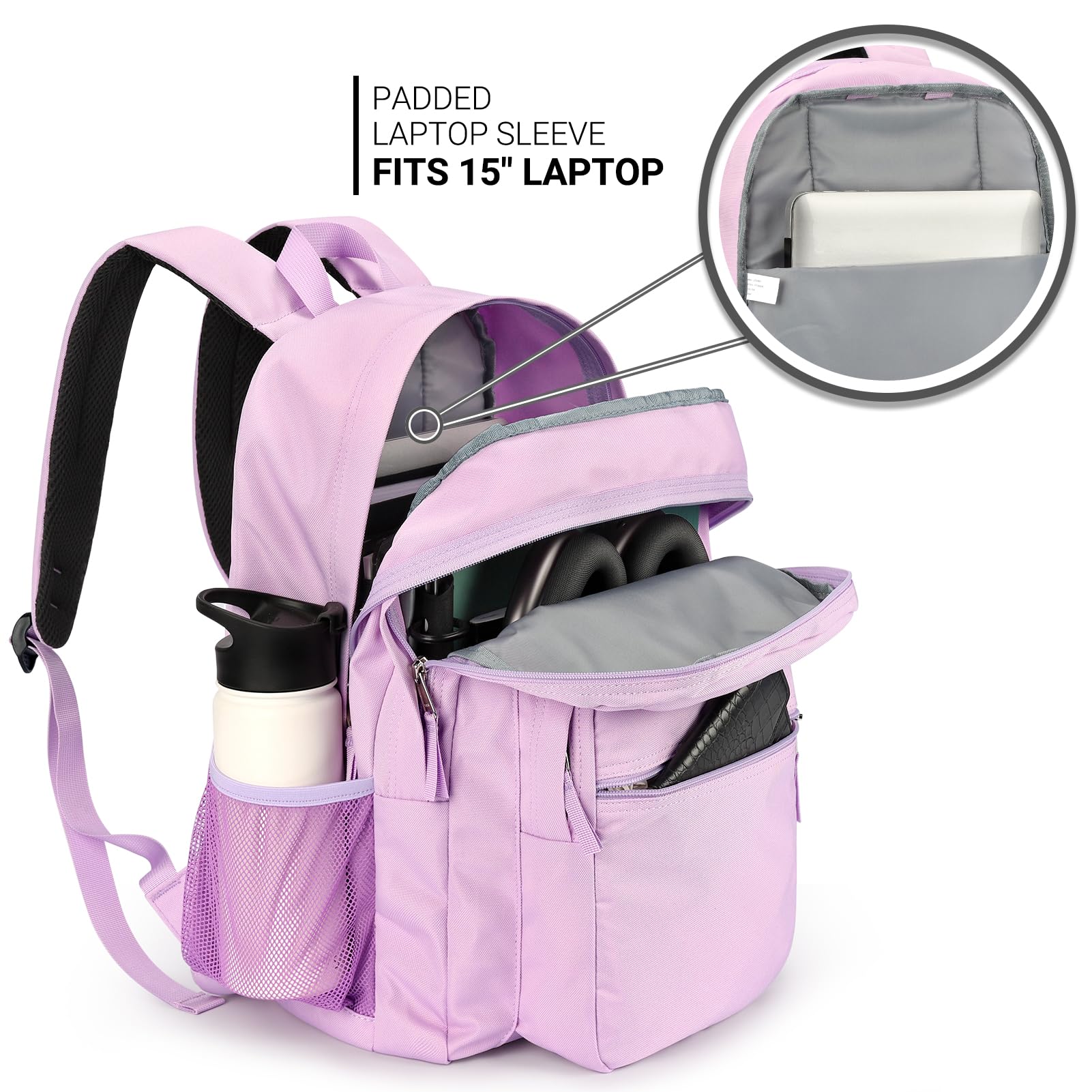 Convenient Storage Backpack: Our unisex laptop backpack features two main compartments, including a dedicated laptop sleeve for up to 15.6" devices. It also boasts a discrete front stash pocket, a utility pocket with an integrated organizer, and an additional external zippered pouch for quick access. Plus, two side pockets accommodate various water bottle sizes.