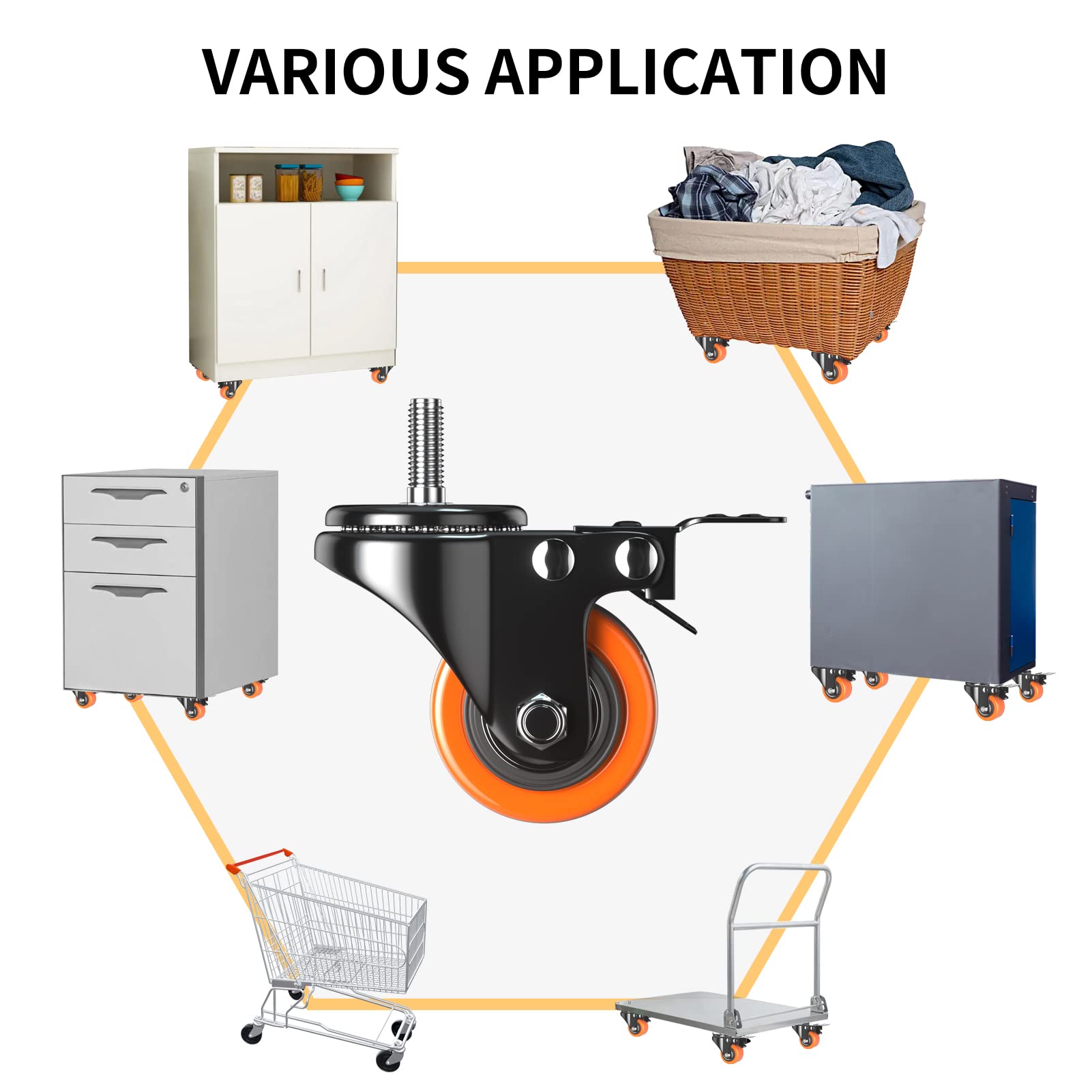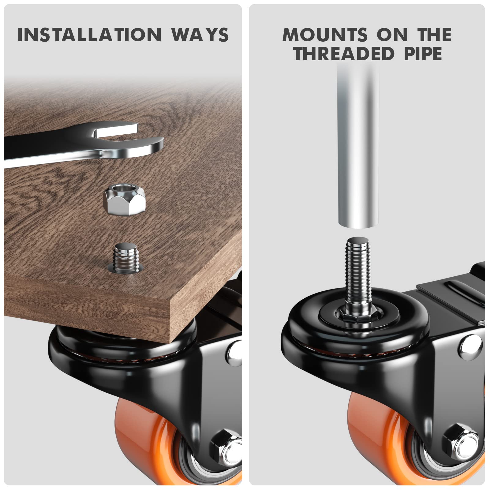 WIDE APPLICATION-ADDING ROLLING ABIILITY TO YOUR HEAVY OBJECT: The threaded caster wheels are suitable for various indoor and outdoor uses, can be quickly attach to workbenches, instrument cases, barbeque grills, shelving units, and other items commonly found in workshops, garages, kitchens, and offices.