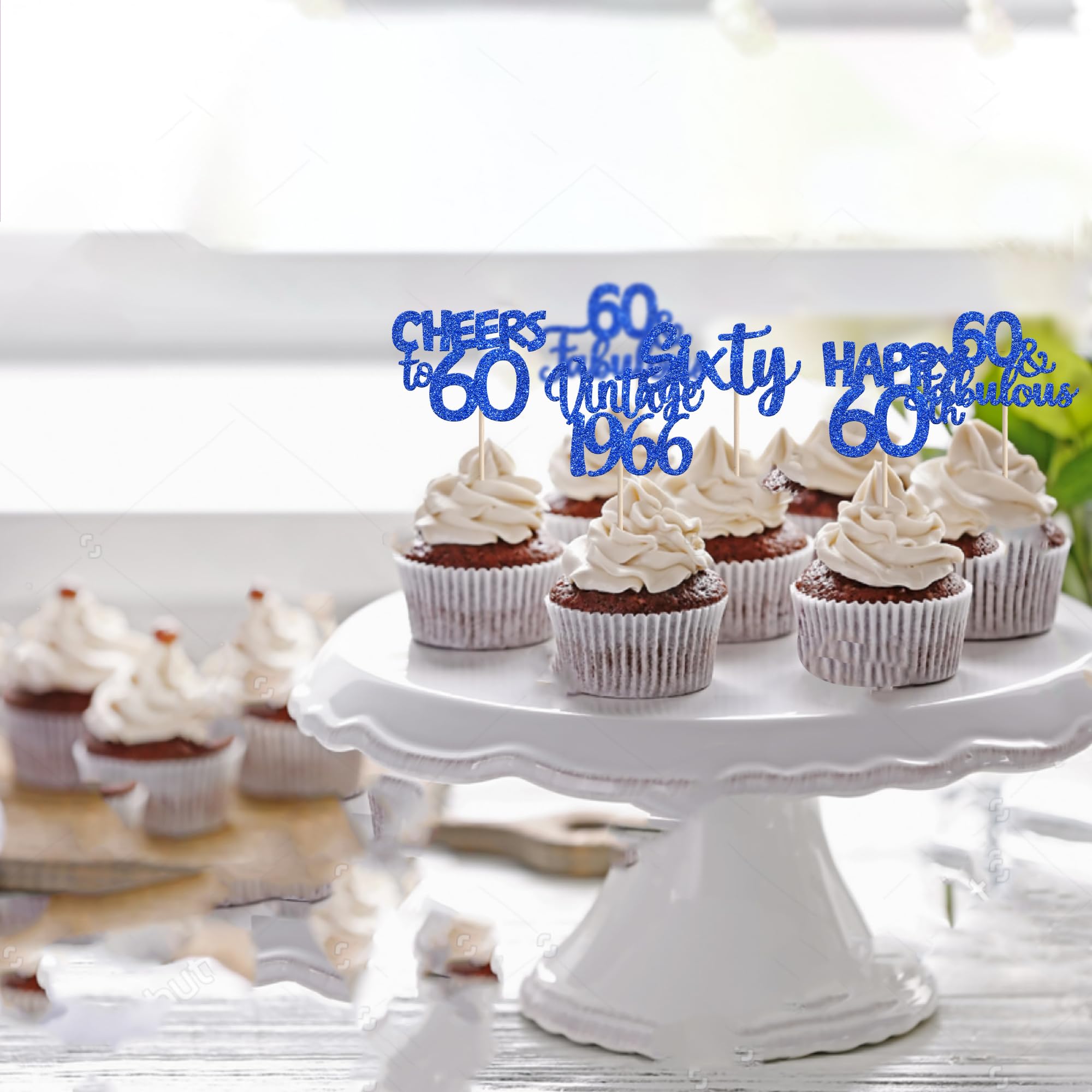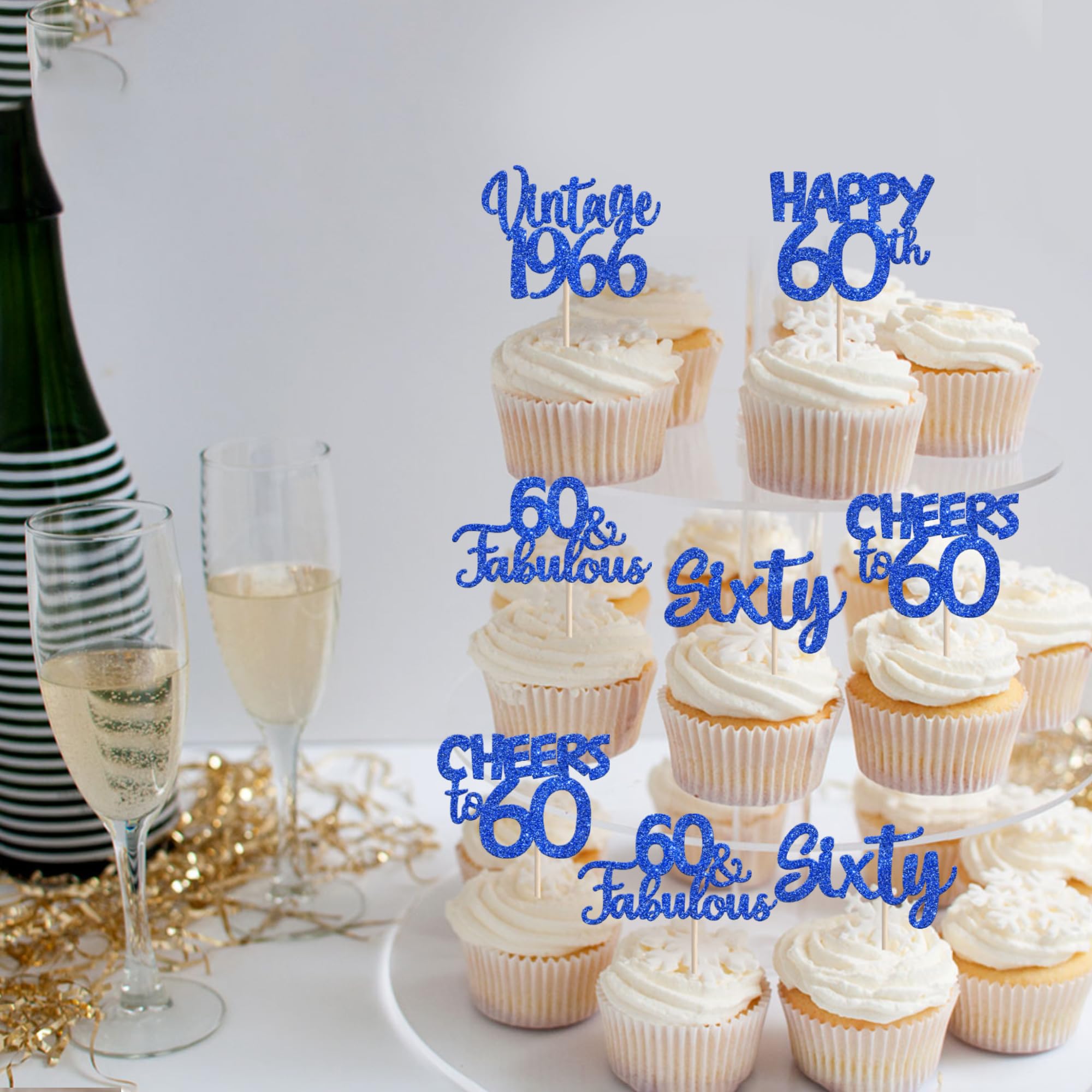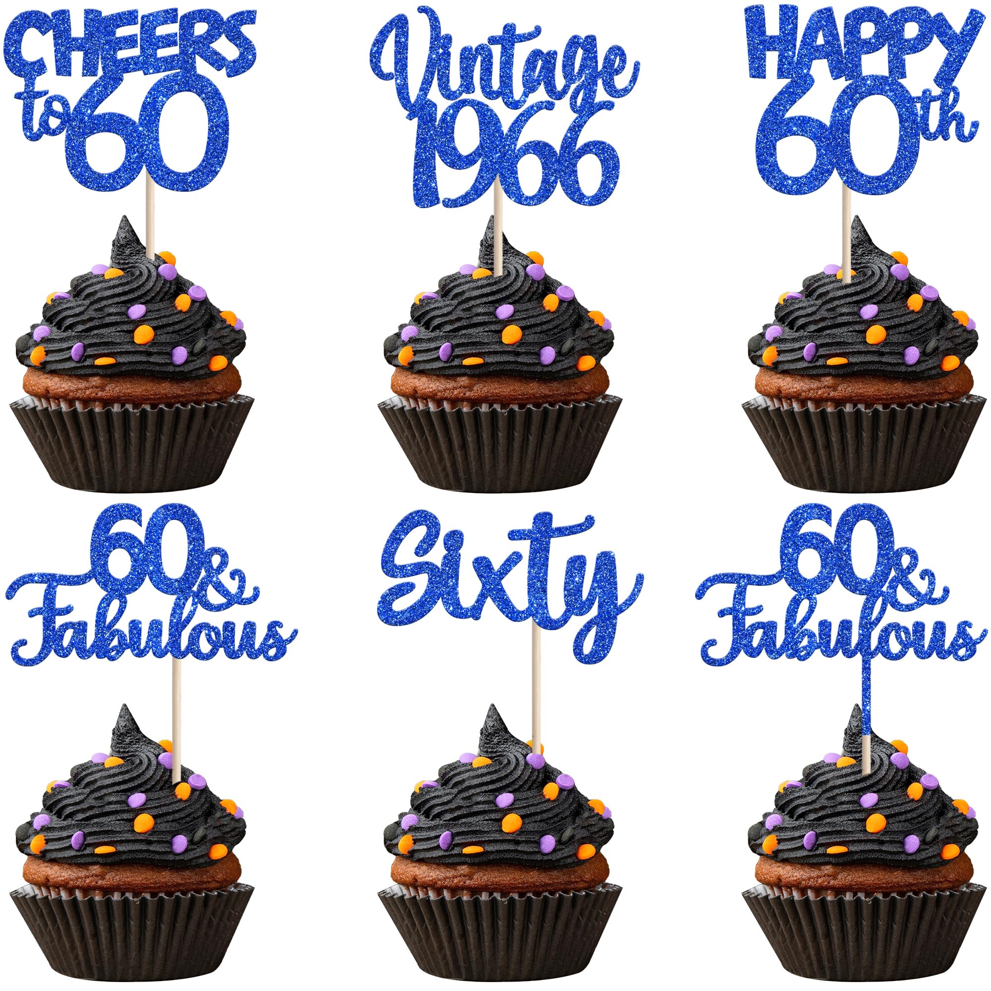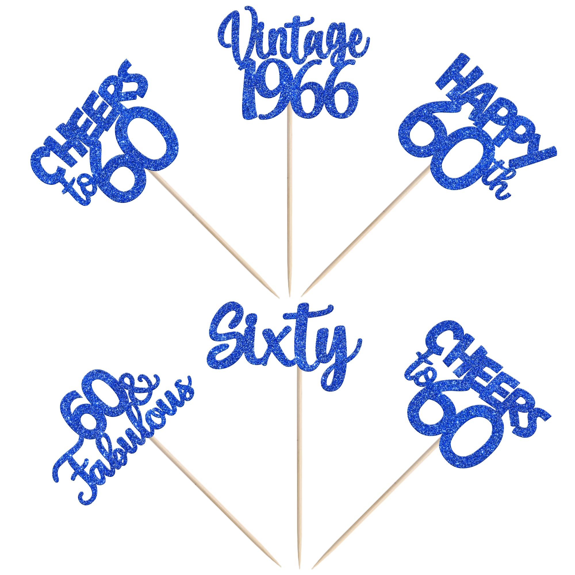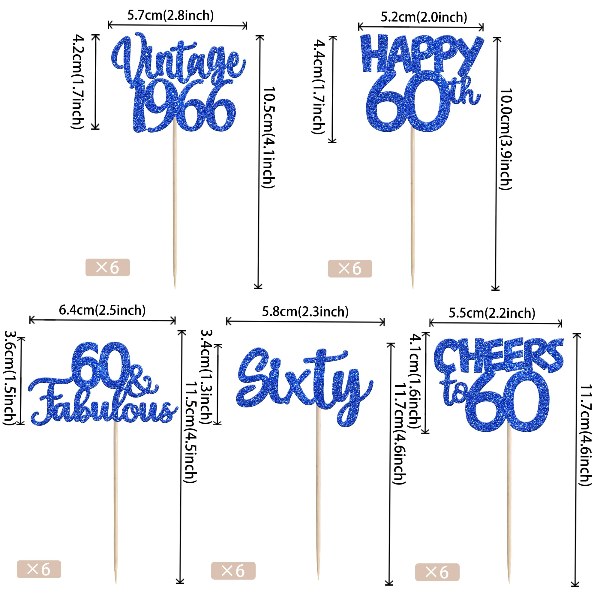 Vintage 1966 Theme 60th Birthday Party Cupcake Decorations Perfect for vintage 1966 theme party, 60th birthday theme party, 60th wedding anniversary theme party,cheers to 60 years theme party cupcake decorations supplies. Pack of 30 pcs,6 pcs of each design The size is 2.8*4.1/ 2.0*3.9/ 2.5*4.5/ 2.3*4.6/ 2.2*4.6 inch ( with stick ) Made of high quality paper card stock,thick and thick and sturdy. These vintage 1966 cupcake toppers are single glitter, the back is white, and they are intended for decoration only, please do not put them in oven or microwave. If the item you received has any defects, please contact us immediately.we will deal with it within 24 hours.