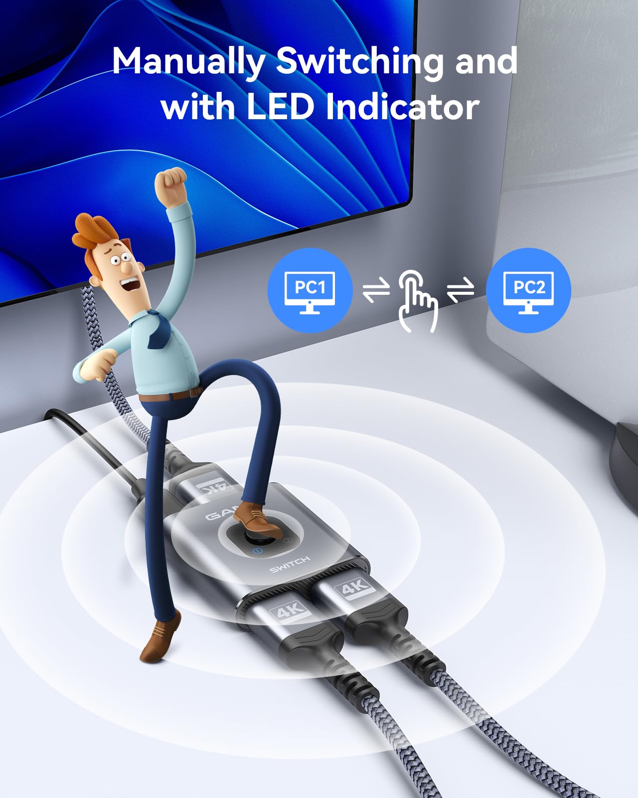 【Fast and Stable Transmission】This aluminum HDMI AB Switcher not only support high bandwidth 3.4Gbps data transmission, but also ensure stable and high-definition display of audio and video, reduce data transmission loss and improve signal transmission efficiency. HDMI Cable NOT Included