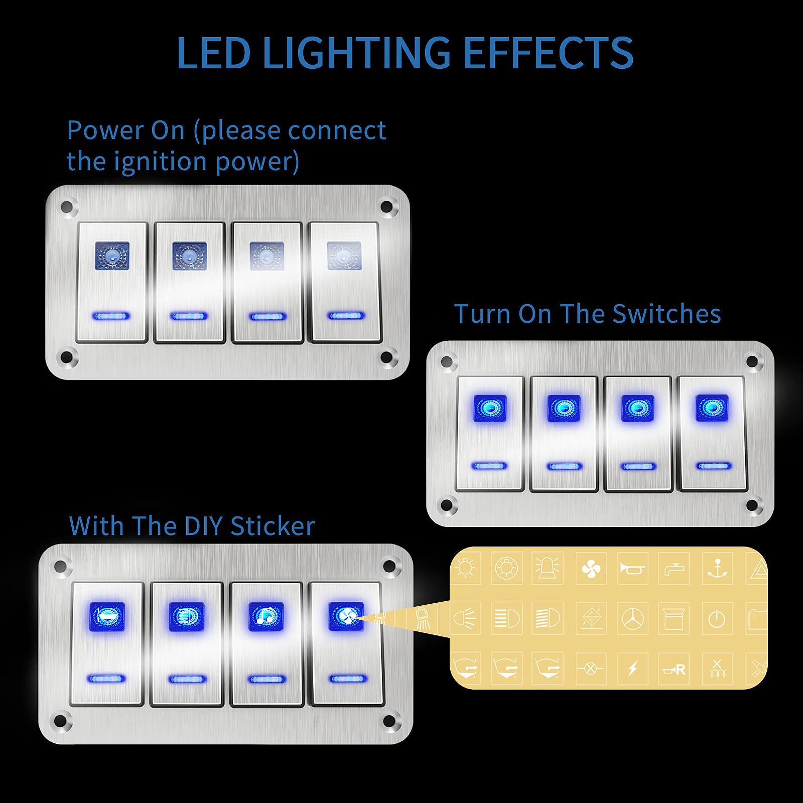 ✔【ALUMINUM SWITCHES & PANEL】 Made of aluminum switches and aluminum panel, our rocker switch panel is sturdier and more durable than plastic one, these switches have a longer service time, will save lots of money of replacements.