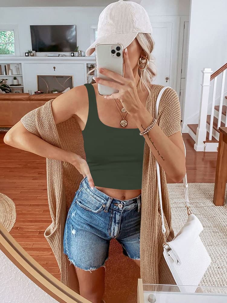 🌸Versatile,can be worn in many different ways!This square neck crop top for teen girls/women is basic and chic.Cute with yoga pants, joggers,skirts or high waist jeans!