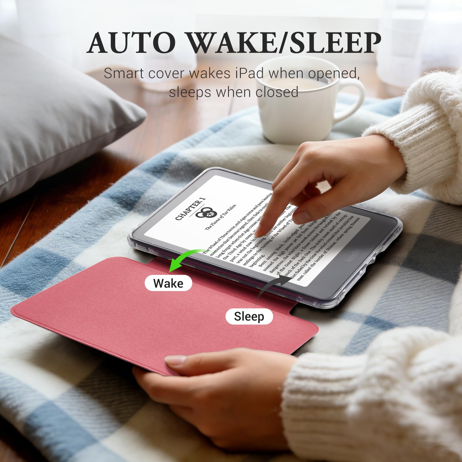 Smart Auto Wake/Sleep Function — The magnetic closure automatically wakes your device when opened and puts it to sleep when closed. This feature extends battery life and ensures your Kindle is always ready for your next reading session.