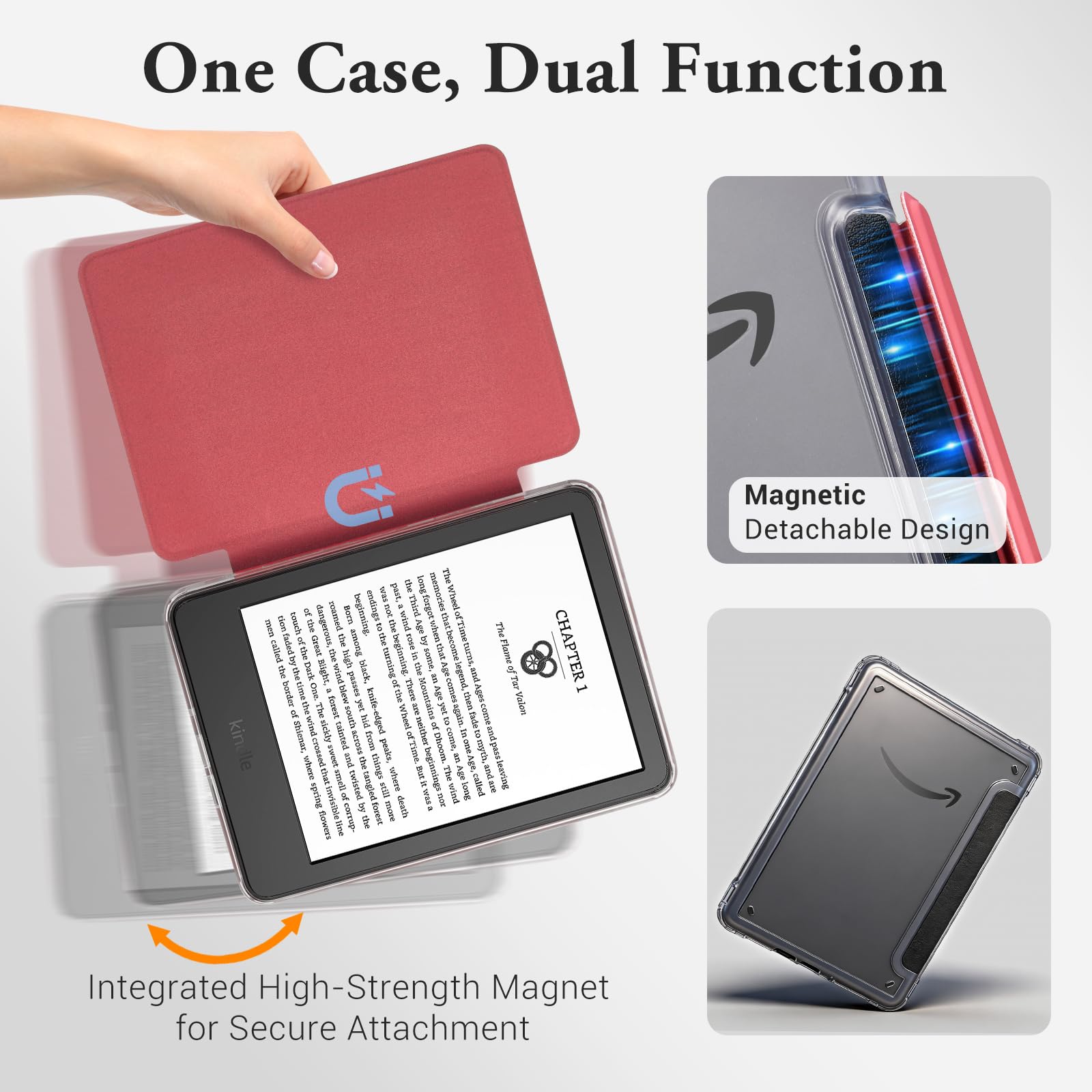 Detachable Magnetic Design — Built with strong magnets that securely attach the front cover to the clear back shell. Easily detach for lightweight, handheld reading—enjoy ultimate flexibility with just the slim, transparent back case when you’re on the go.