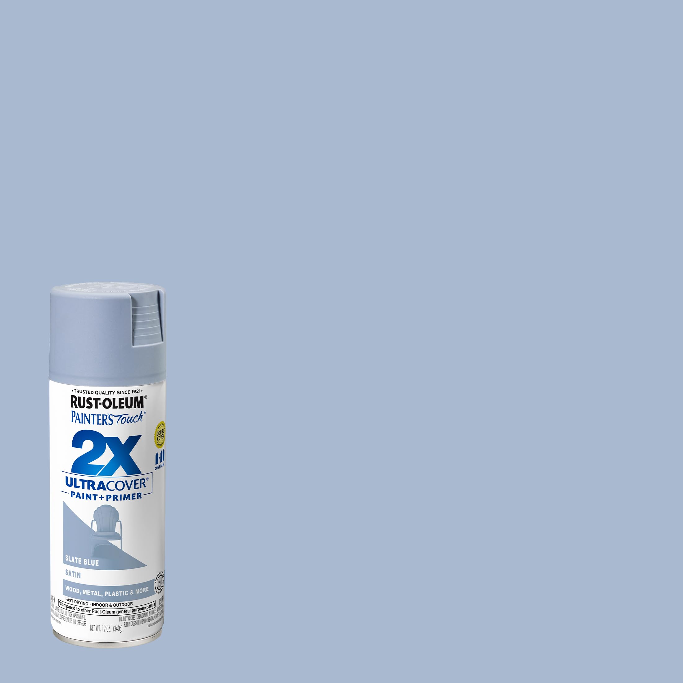 Product Description Painter's Touch 2X Ultra Cover spray paints offer superior coverage for faster project completion. They provide a tough, attractive finish on almost any interior/exterior surface. Designed with a comfort spray tip with a wider finger pad to reduce fatigue caused by continuous spraying. Convenient any angle spray applies easily leaving a rich, deep color that brings out the beauty in your project. From the Manufacturer Rust-Oleum 249066 12-Ounce Painter's Touch 2X Ultra Cover Spray Paint, Slate Blue Satin Rust-Oleum 249066 12-Ounce Painter's Touch 2X Ultra Cover Spray Paint, Slate Blue Satin Features: Spray paint 2X Ultra Cover series Advanced double cover technology provides the best formula for ultimate hiding power Allows projects to be completed faster and easier Fast dry formula Resists chipping and fading Ideal for use on baskets, cabinets, doors, wood or metal furniture, plaster, shutters, trim, unglazed ceramic and wicker Smooth, durable finish Any angle spray with comfort spray tip Satin.