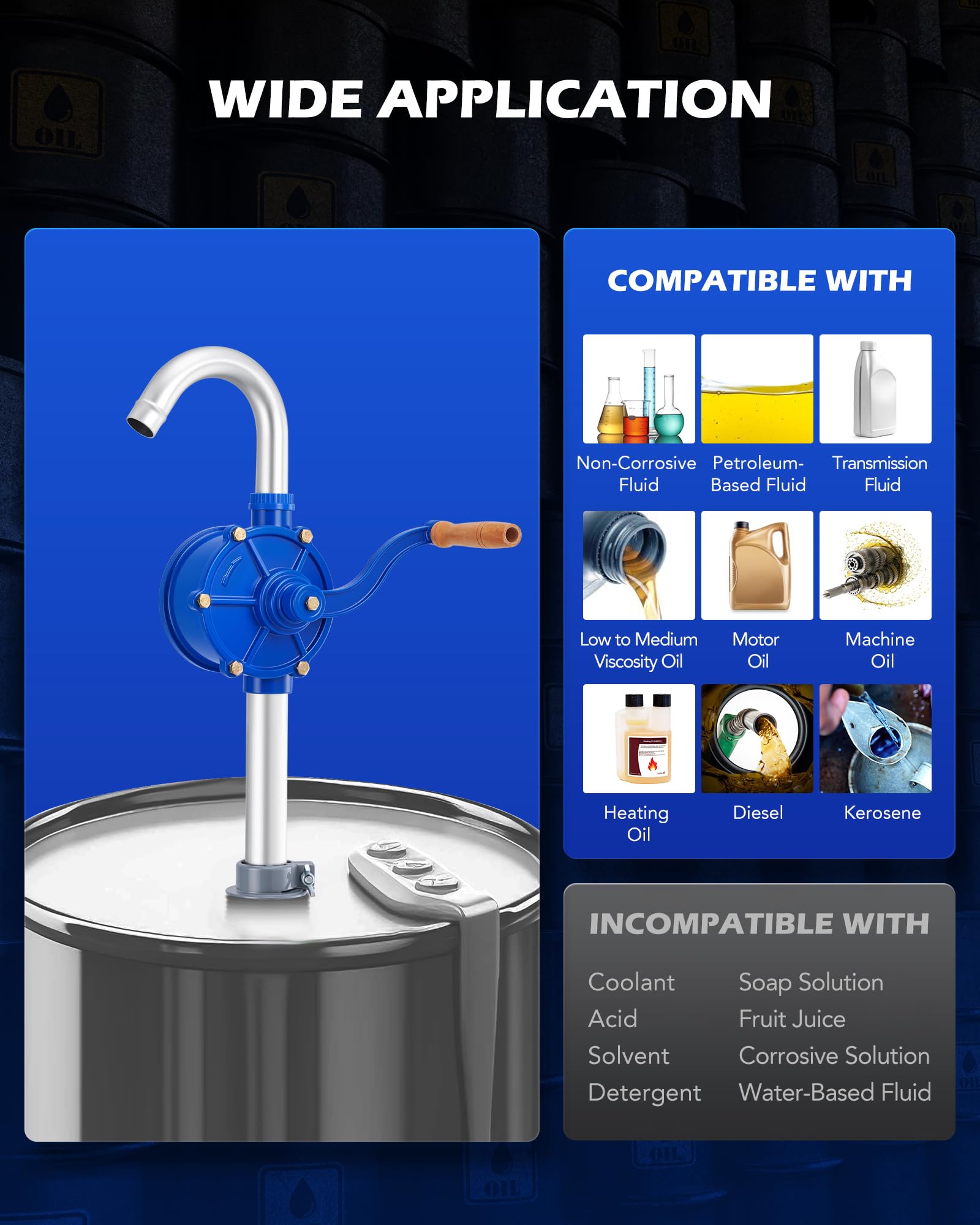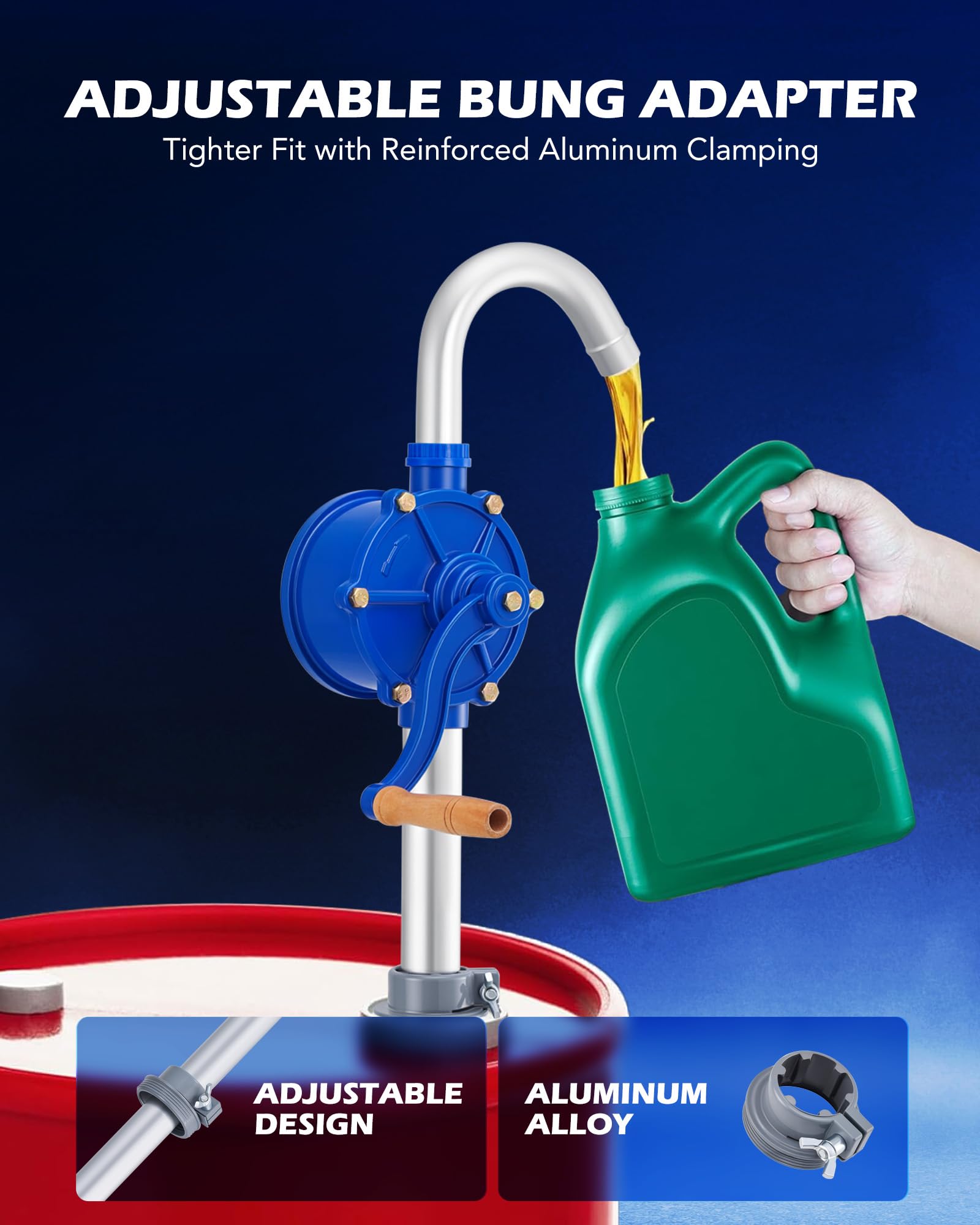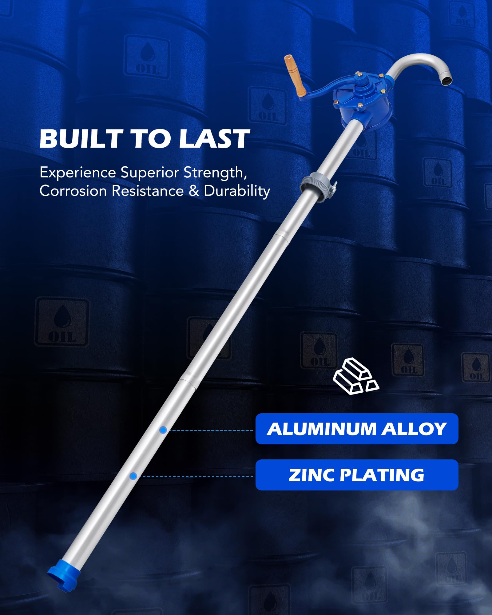 Heavy-Duty Construction: Crafted from durable aluminum alloy with zinc plating, this 55 gal. oil drum pump is built to withstand daily use and resist corrosion for long-lasting performance