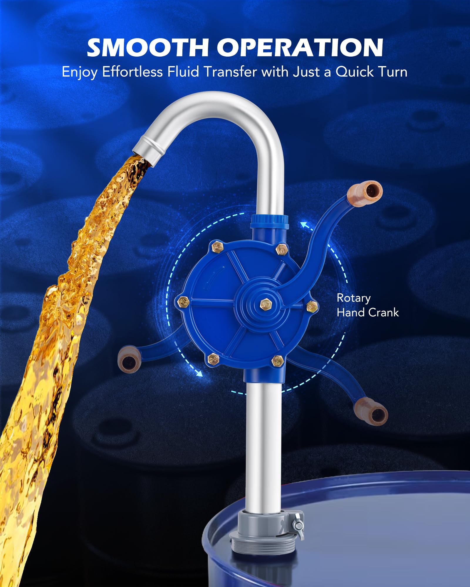 Firm Grip Handle: This 55 gal barrel pump features an ergonomic hand crank designed to provide a secure and comfortable grip, allowing you to apply more pressure with minimal effort
