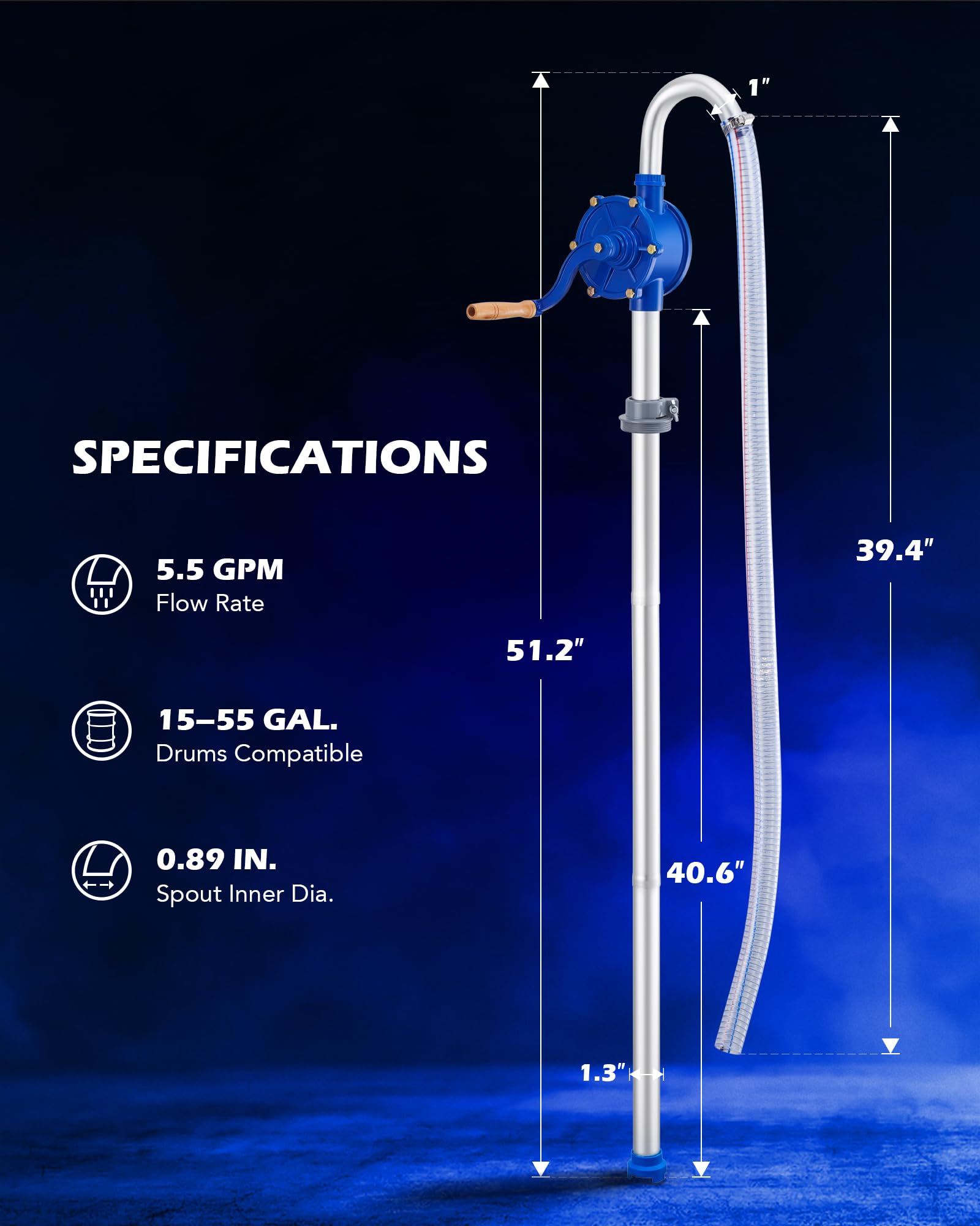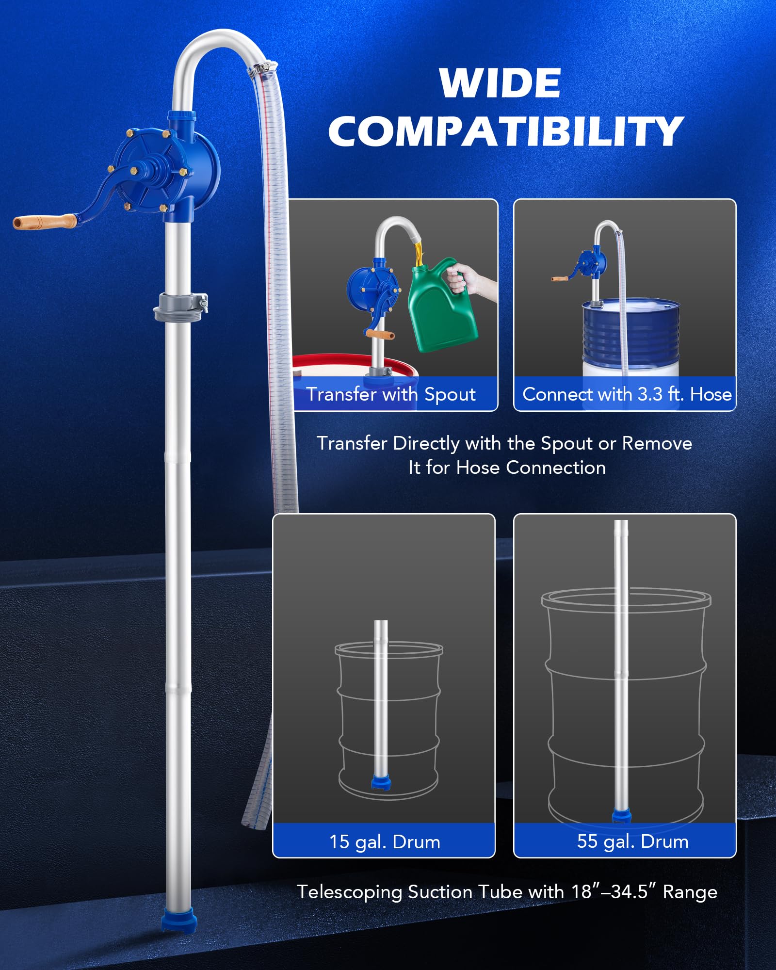 Easy & Quick Oil Transfer: Orion Motor Tech's hand crank fuel pump makes fluid transfer super easy and hassle-free. Its 3-section telescoping suction tube extends from 11.8" to 35.4", perfect for 15-55 gal. drums and barrels