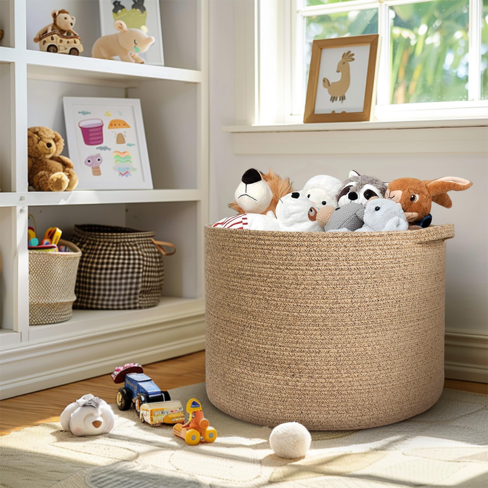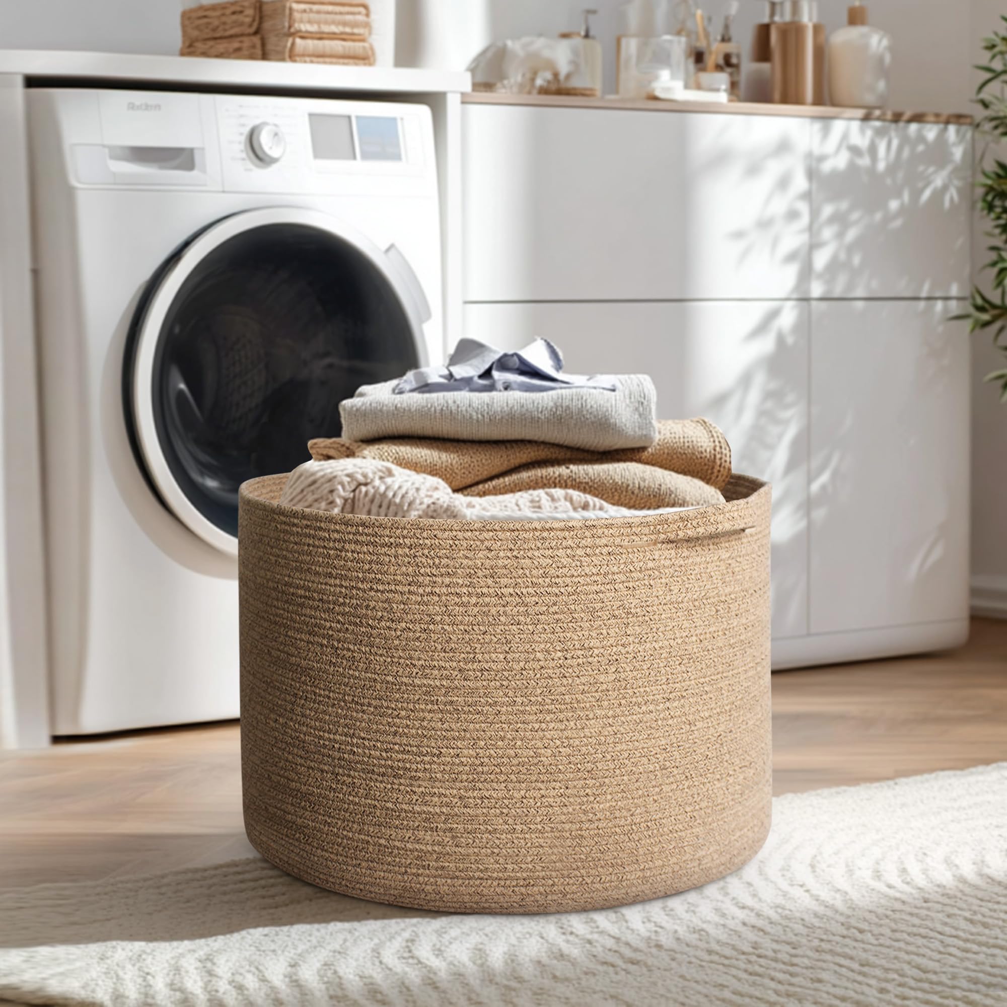 Soft Cotton Rope Basket: Crafted from natural cotton rope, this brown basket is soft to the touch yet sturdy enough for daily use. The jumbo woven basket is odor-free and features no hard edges, making it a safe choice for homes with kids and dogs—gentle enough for children to climb in and won’t scratch or damage your floors.