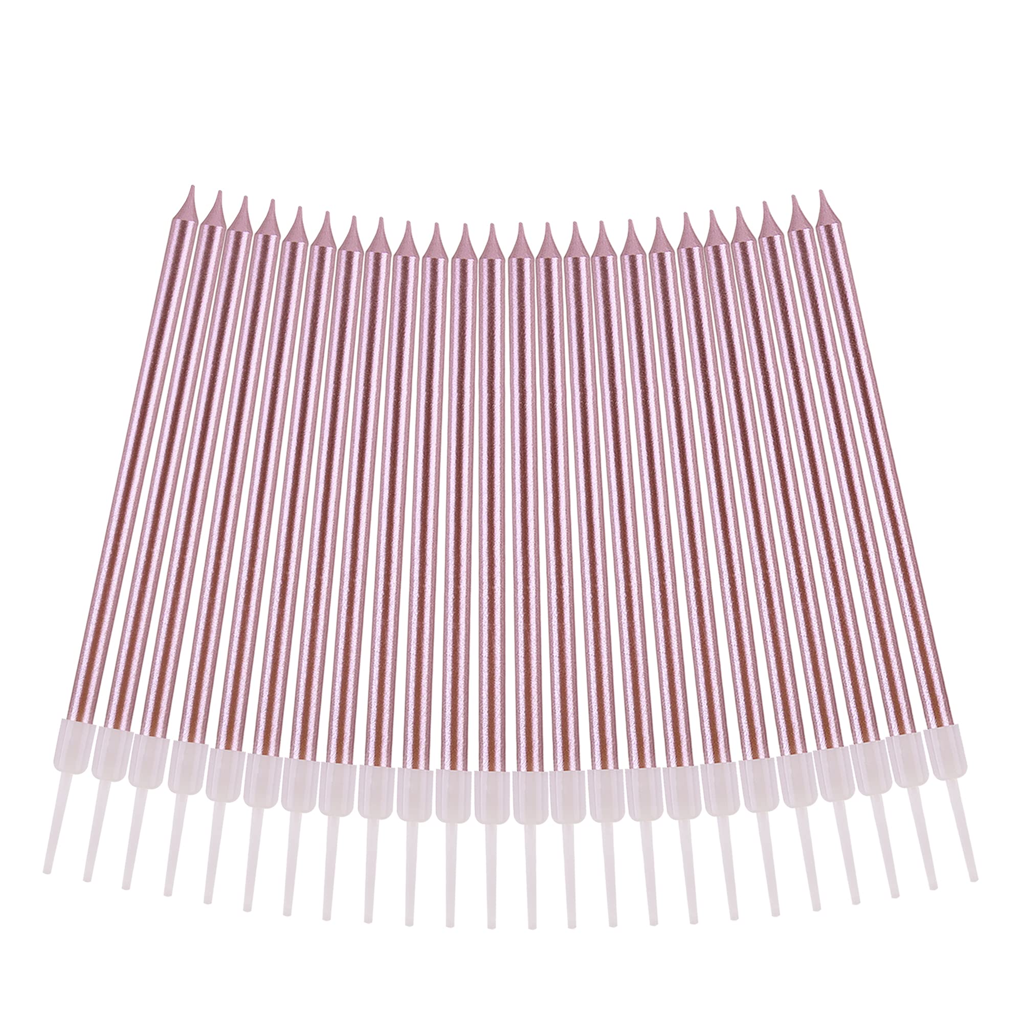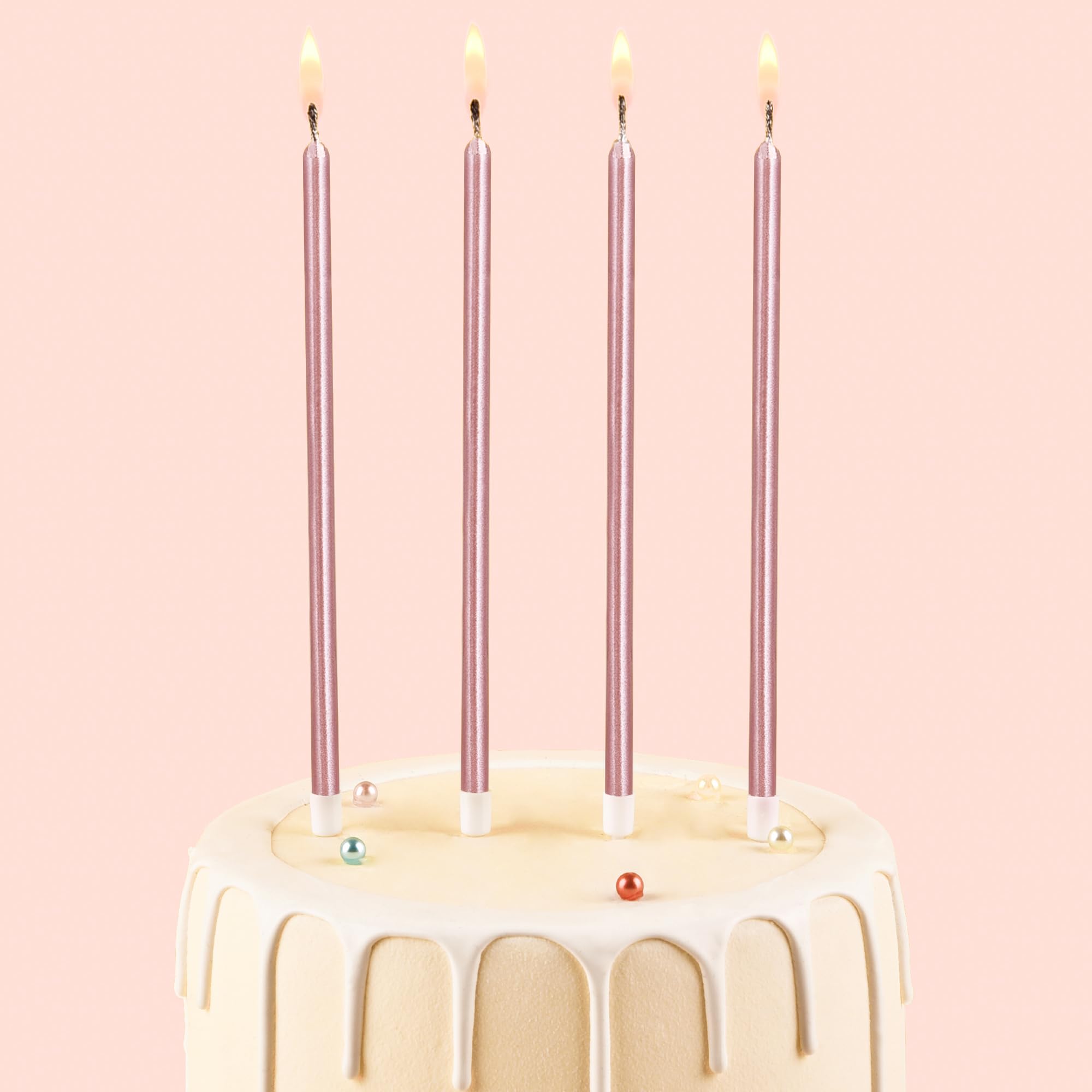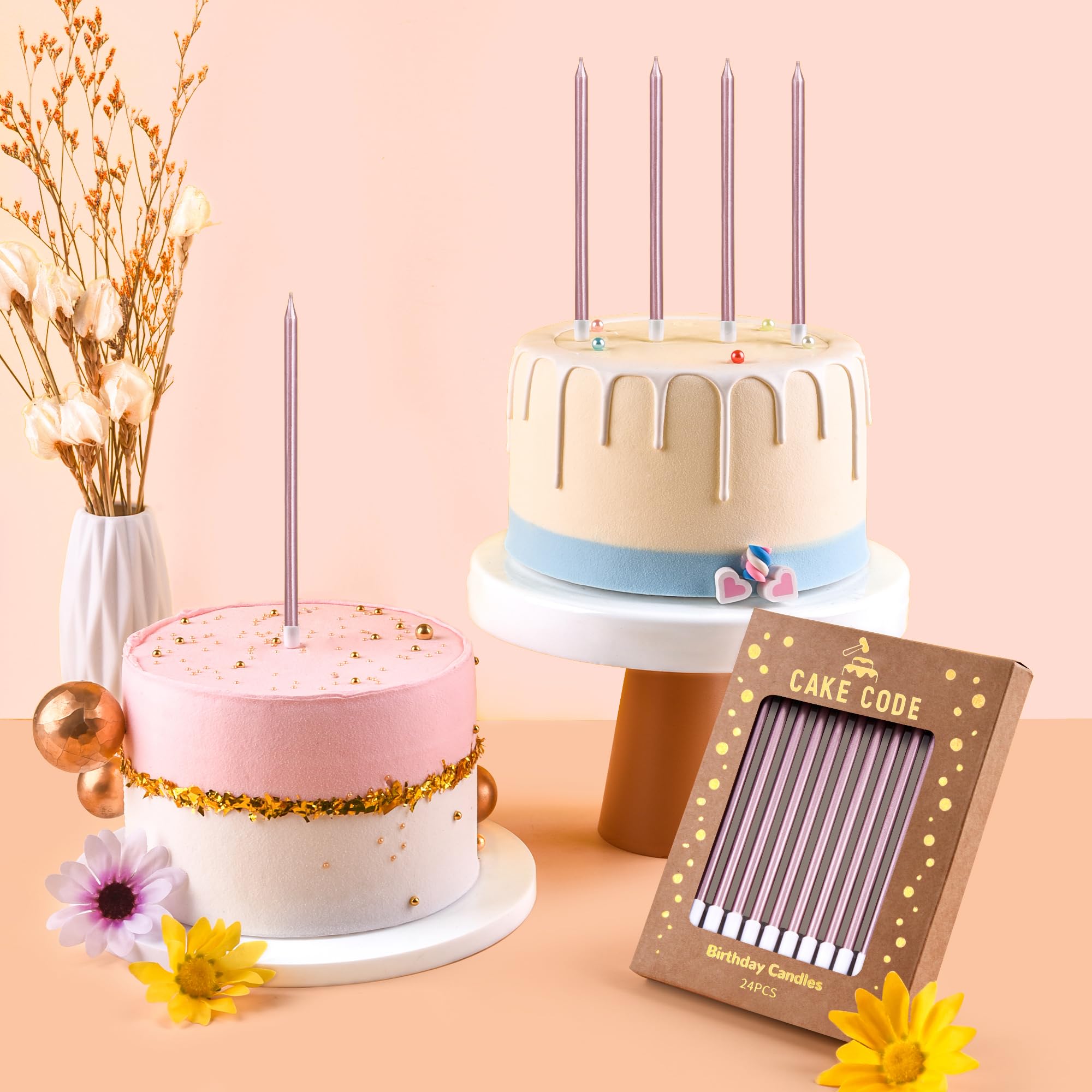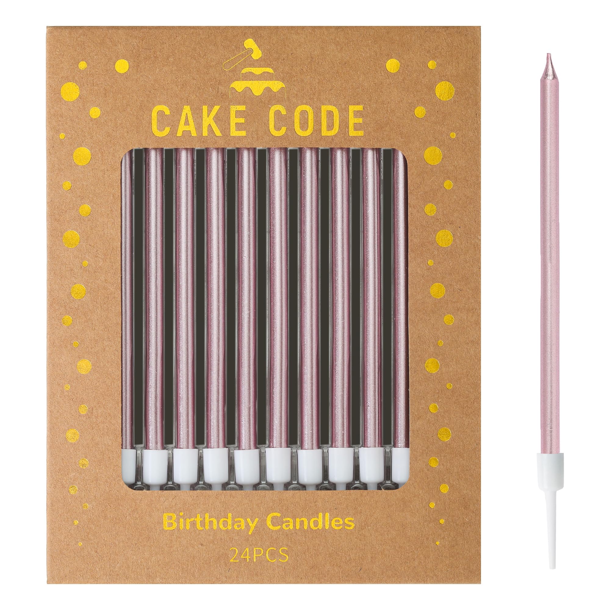 New: CAKE CODE's 24 long, thin & tapered elegant rose gold cake candles are the perfect finishing touch to celebration cakes and cupcakes. Designed to make your celebration a truly lovely event.
