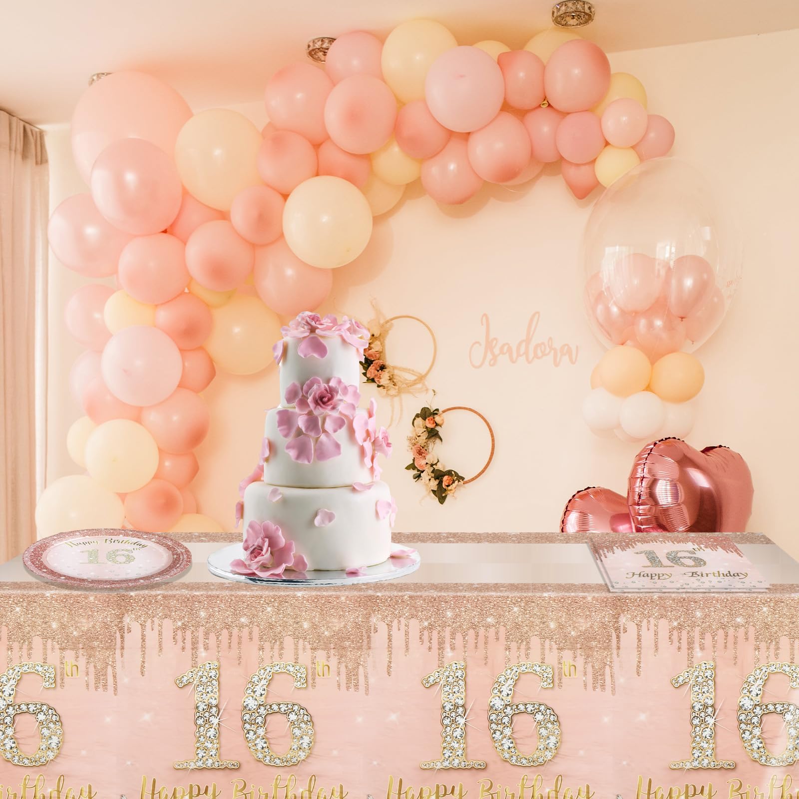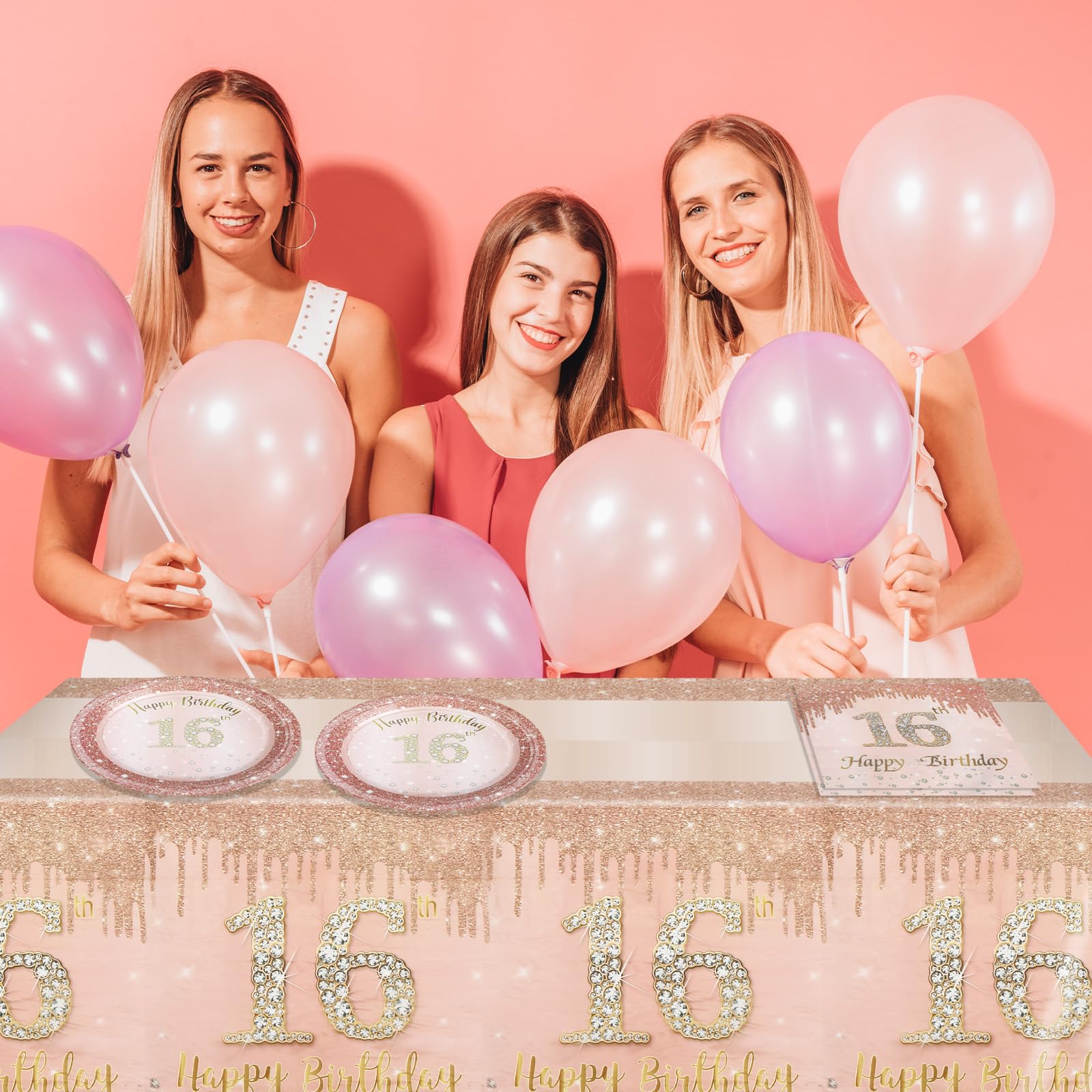 【UNIQUE BIRTHDAY PARTY DESIGN】Elevate your pink happy 16 Years birthday party tableware set with these happy birthday 16 table plates. The rose gold color scheme exudes a sense of class and style, while adding a touch of sparkle and charm. These happy birthday 16 decorations are sure to impress your guests and create a memorable atmosphere