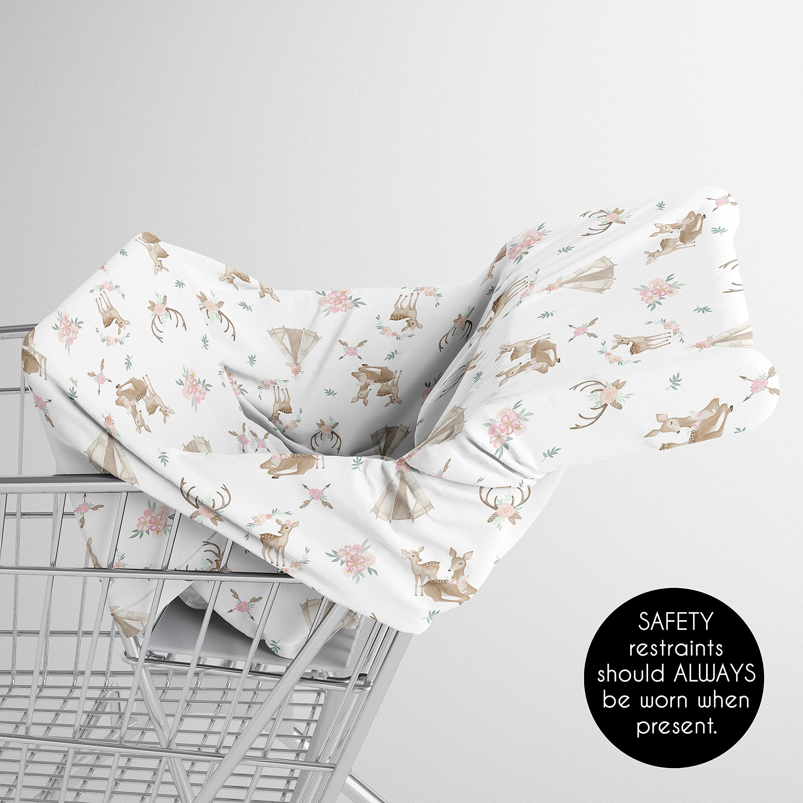 Featuring exclusive fabric of blush pink and mint green bohemian floral watercolor boho woodland deer.