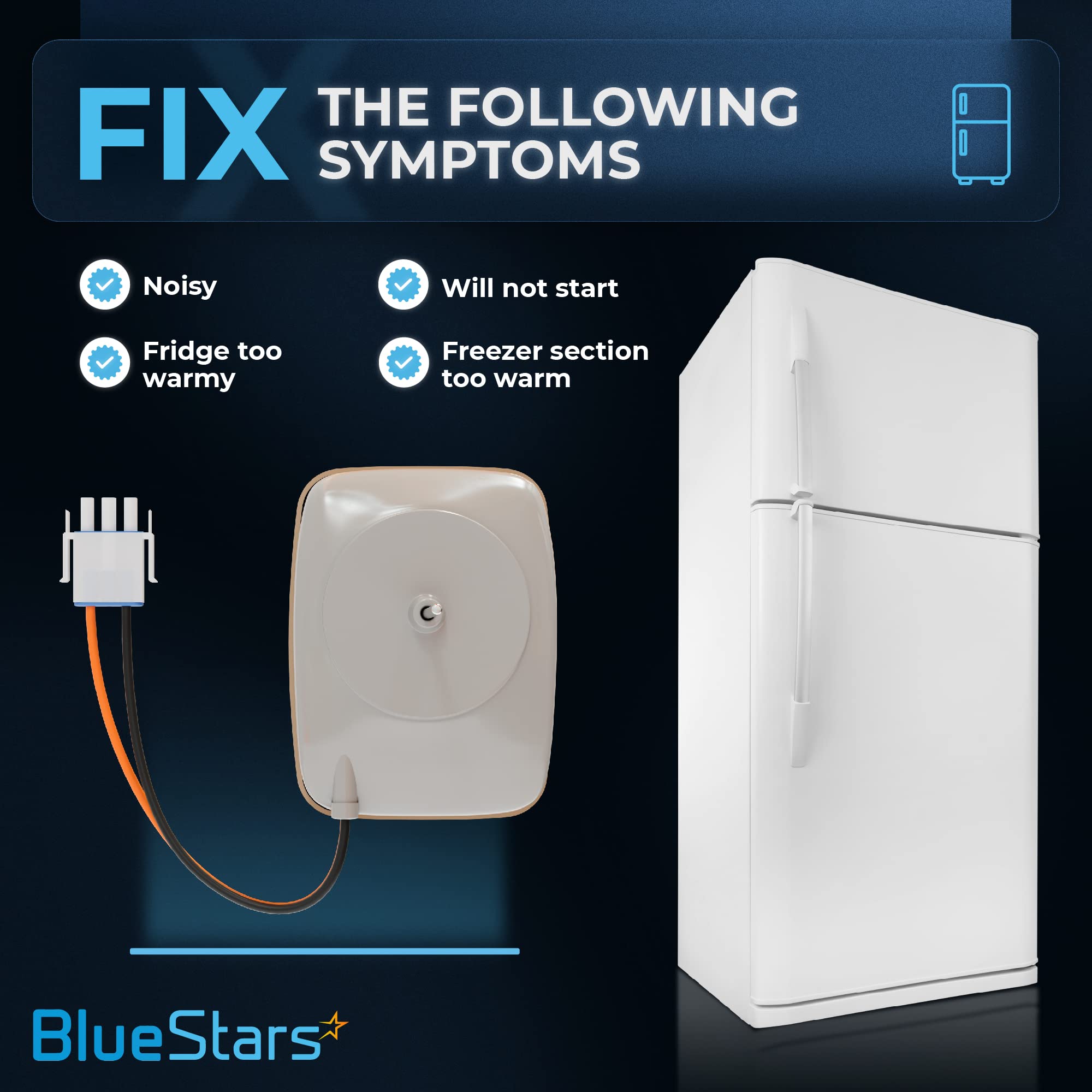 PREMIUM QUALITY: The replacement part is made from durable high quality material and well-tested by the manufacturer - Meets OEM standards - Ensure long-lasting and effective performance. This part fixes the following symptoms: Noisy | Fridge too warm | Freezer section too warm | Will not start. Please remember to disconnect the power to the appliance before starting your repair.