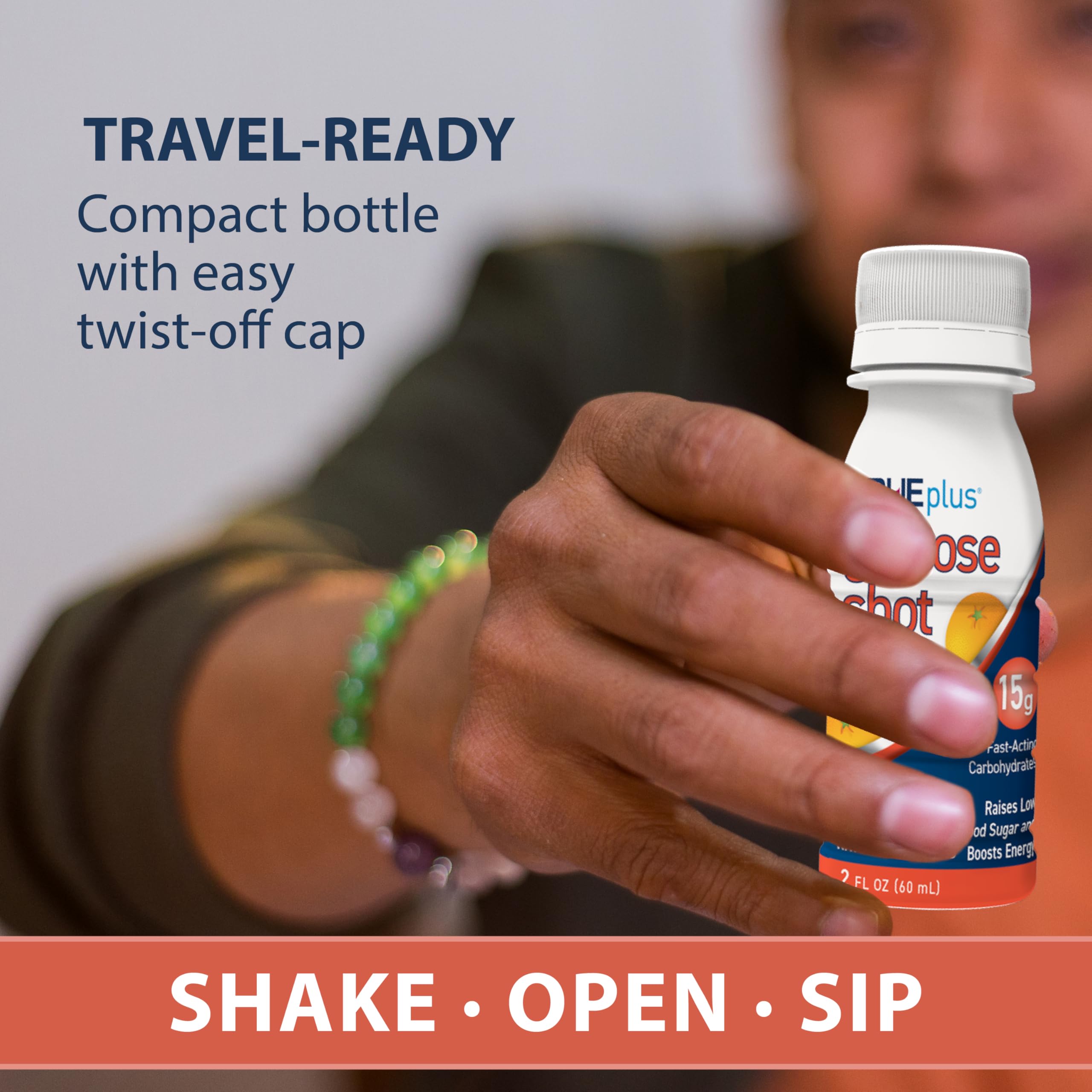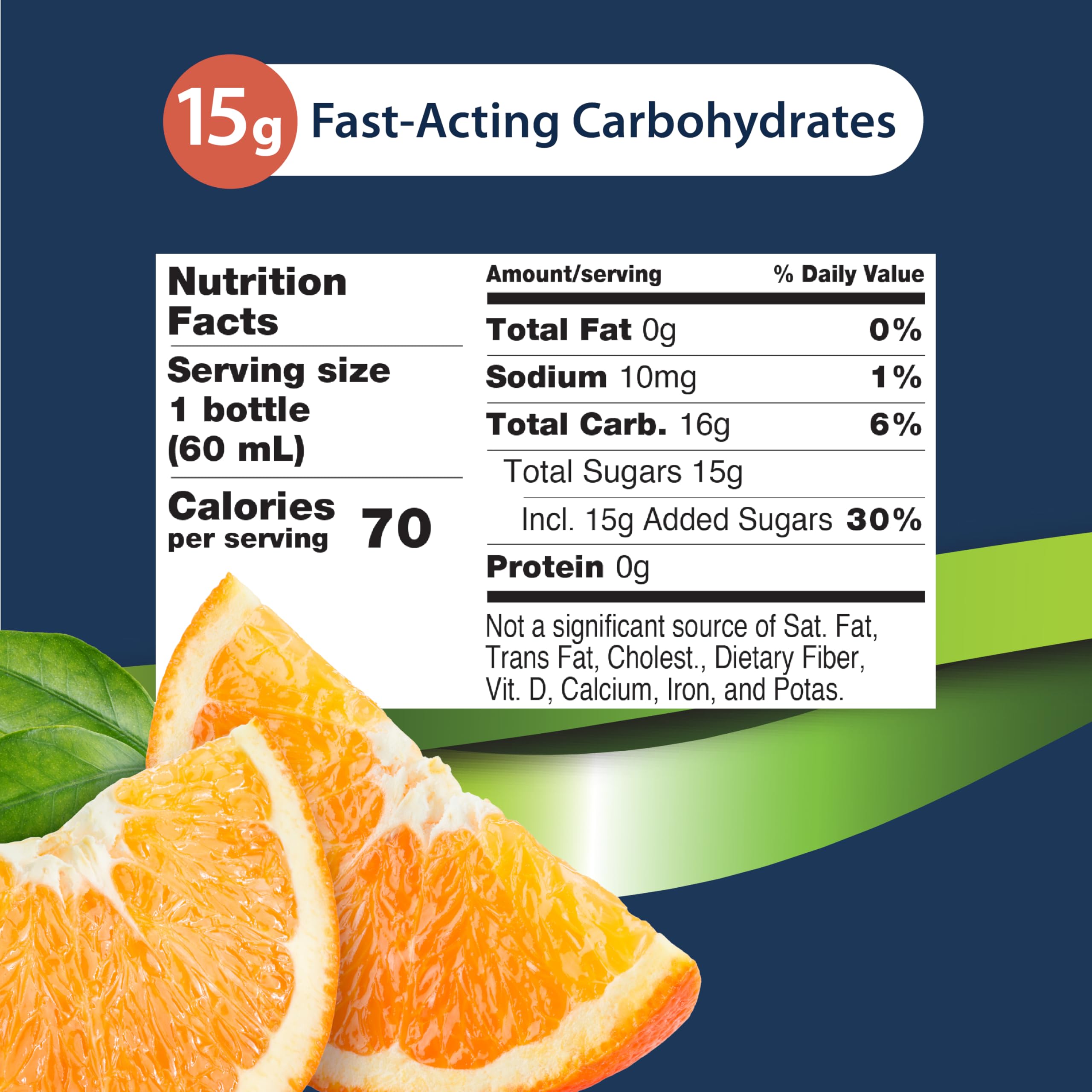 15g of Fast-Acting Carbohydrates Per Shot: Each shot delivers 15 grams of fast-acting carbohydrates to help raise low blood sugar levels and boost energy during activity or when fast glucose is needed—day or night; FSA and HSA eligible