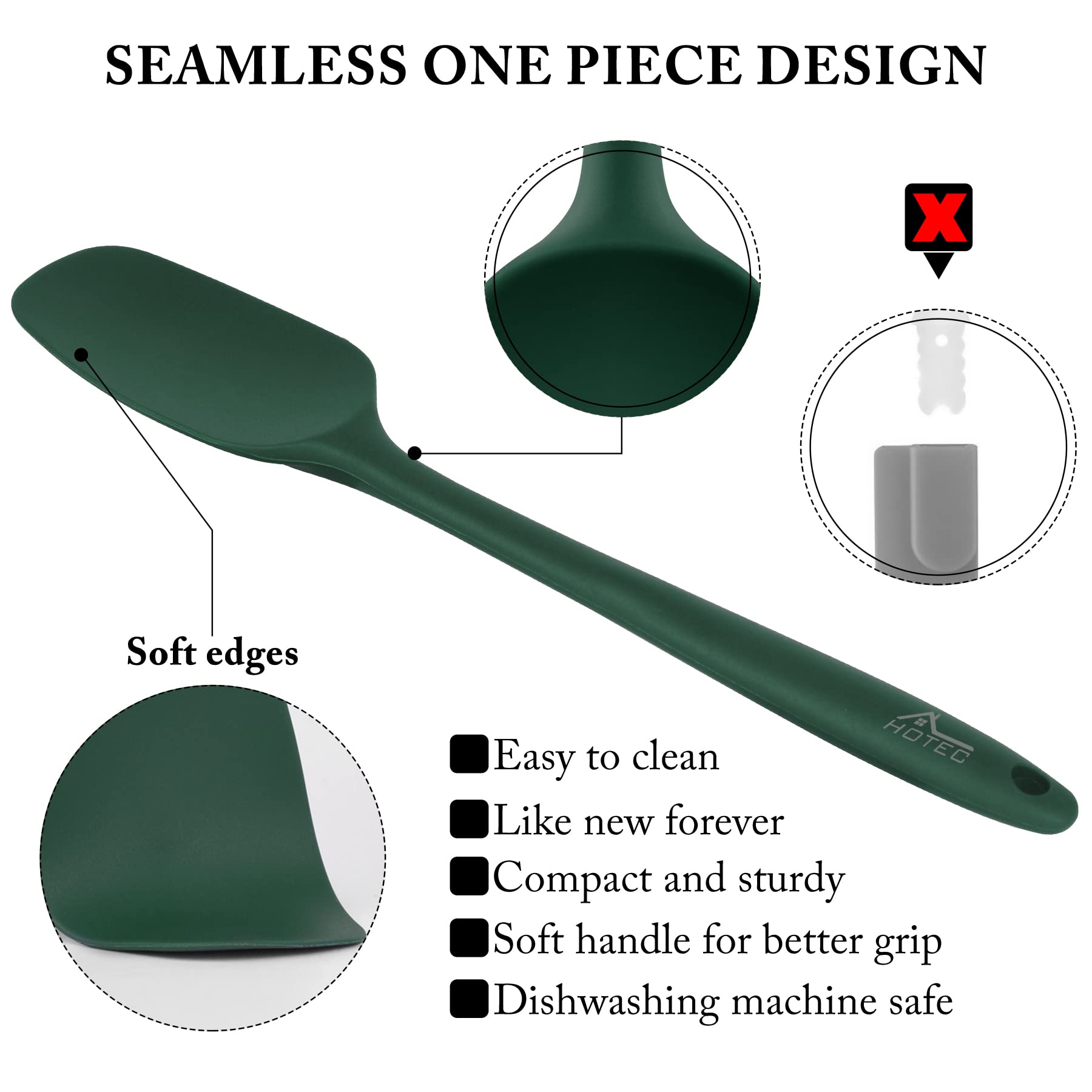 [ SEAMLESS ONE PIECE DESIGN] :Seamless one piece design compact and sturdy ,easy to clean ,and Non-Stick ,Soft Handle for better grip ,Noiseless & Harmless ,Perfect for baking ,cooking and mixing etc.,
