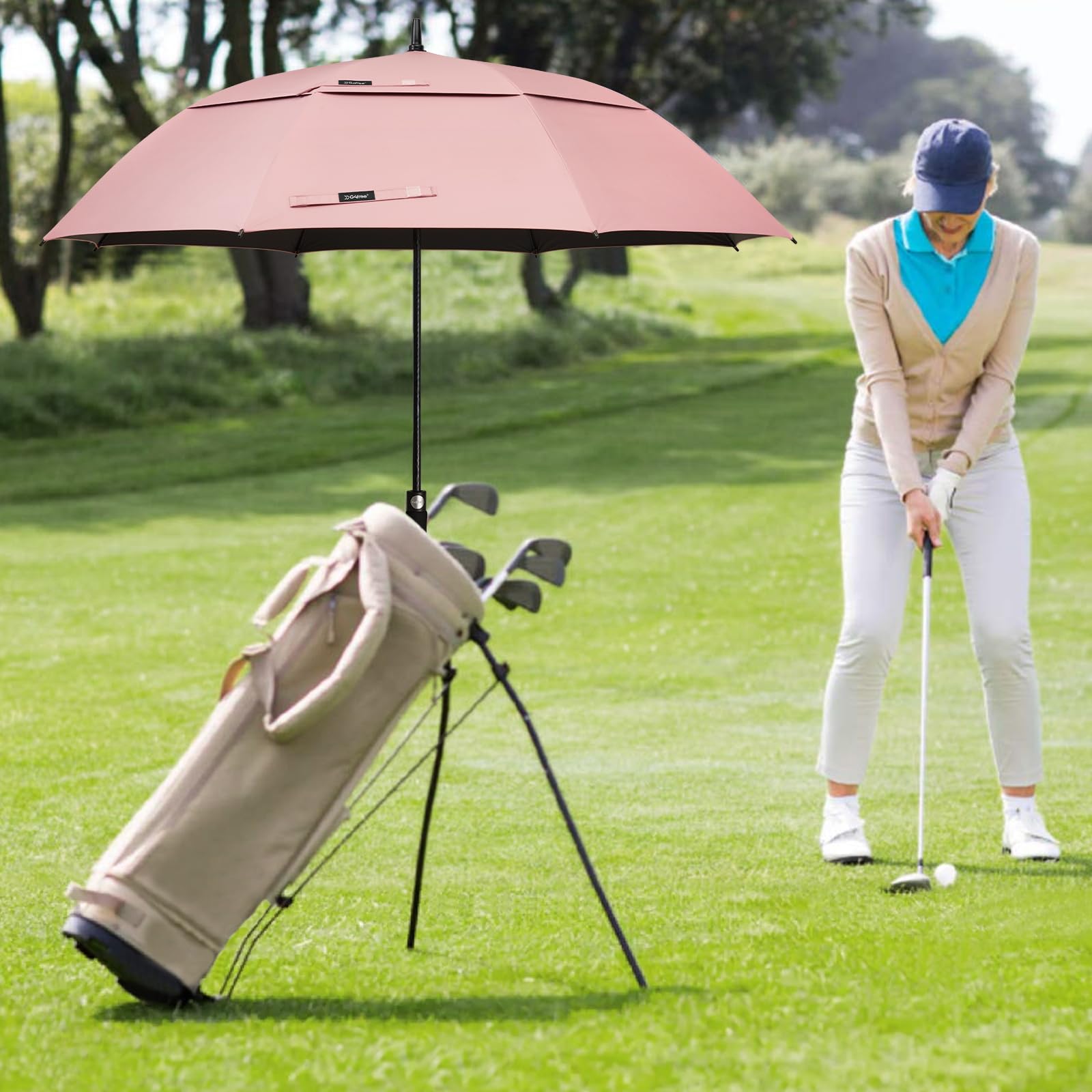 G4Free 47 Inch UV Protection Golf Umbrella Auto Open Vented Double Canopy Oversize Extra Large Windproof Sun Rain Umbrellas (Dusty Rose/Black)