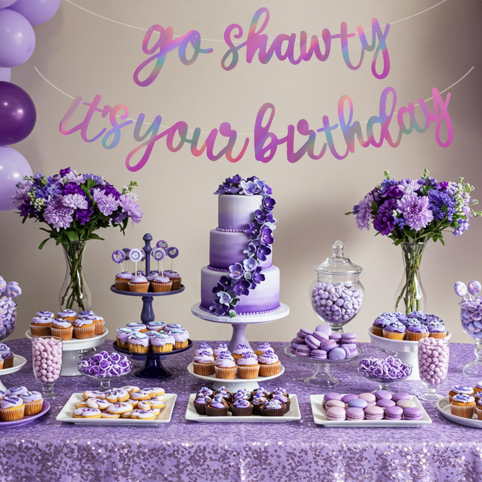 Product includes : A Glitter NO DIY Go Shawty It's Your Birthday Banner is included in our product. It is a very convenient birthday banner that can save your time and decorate your birthday party very well.