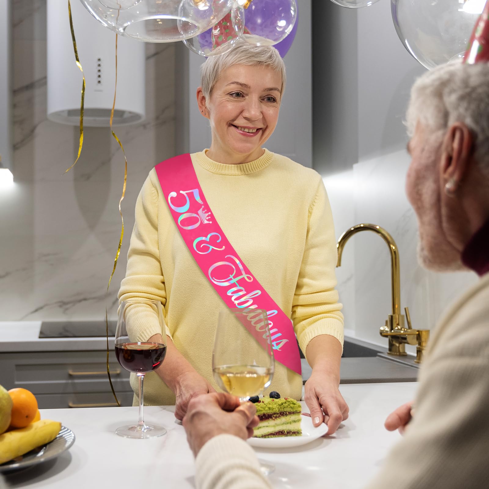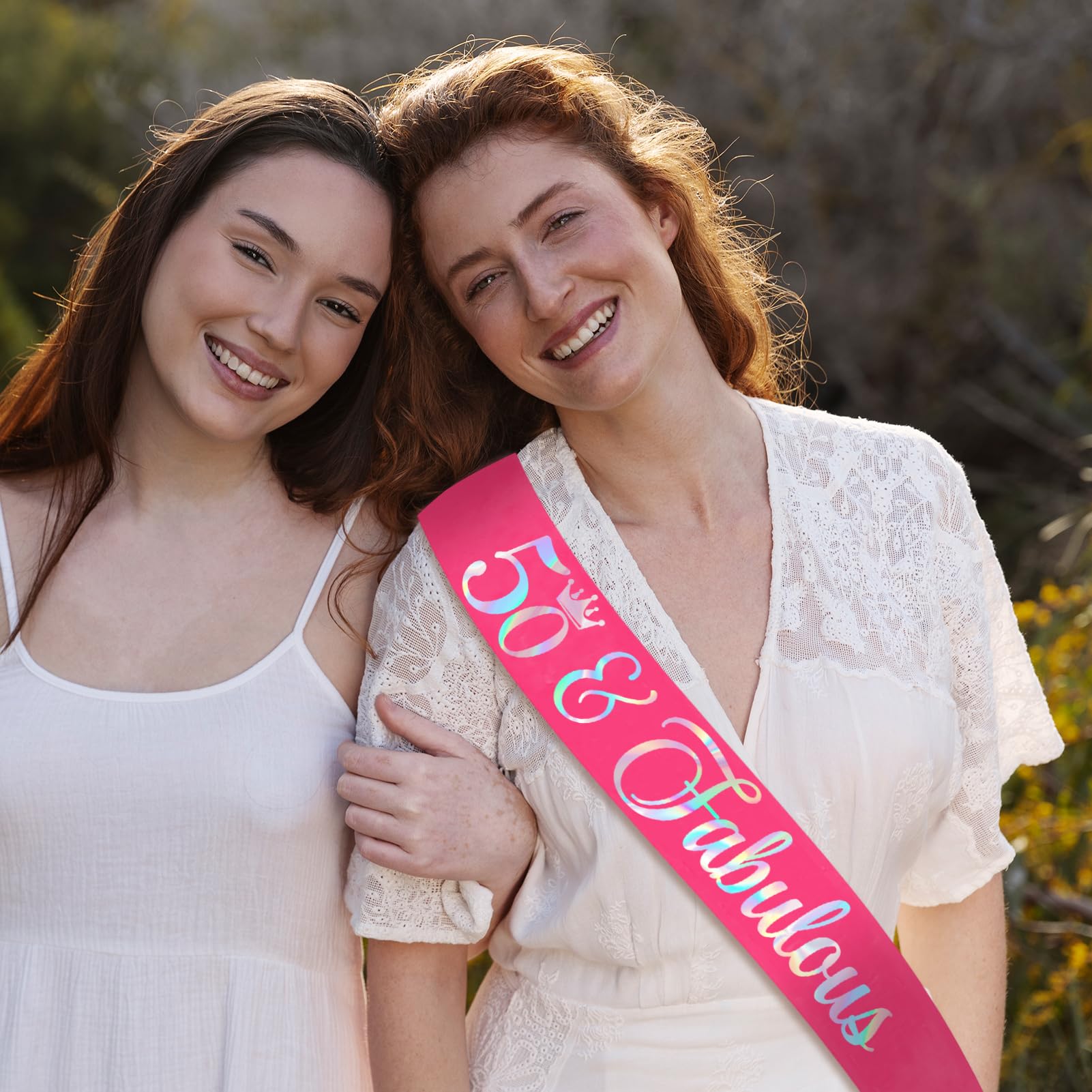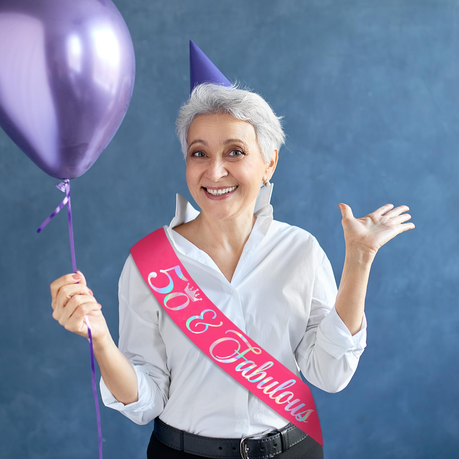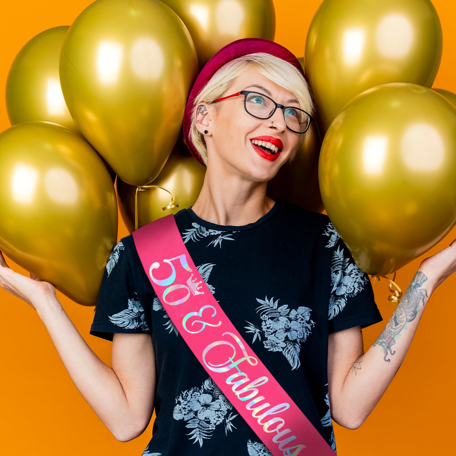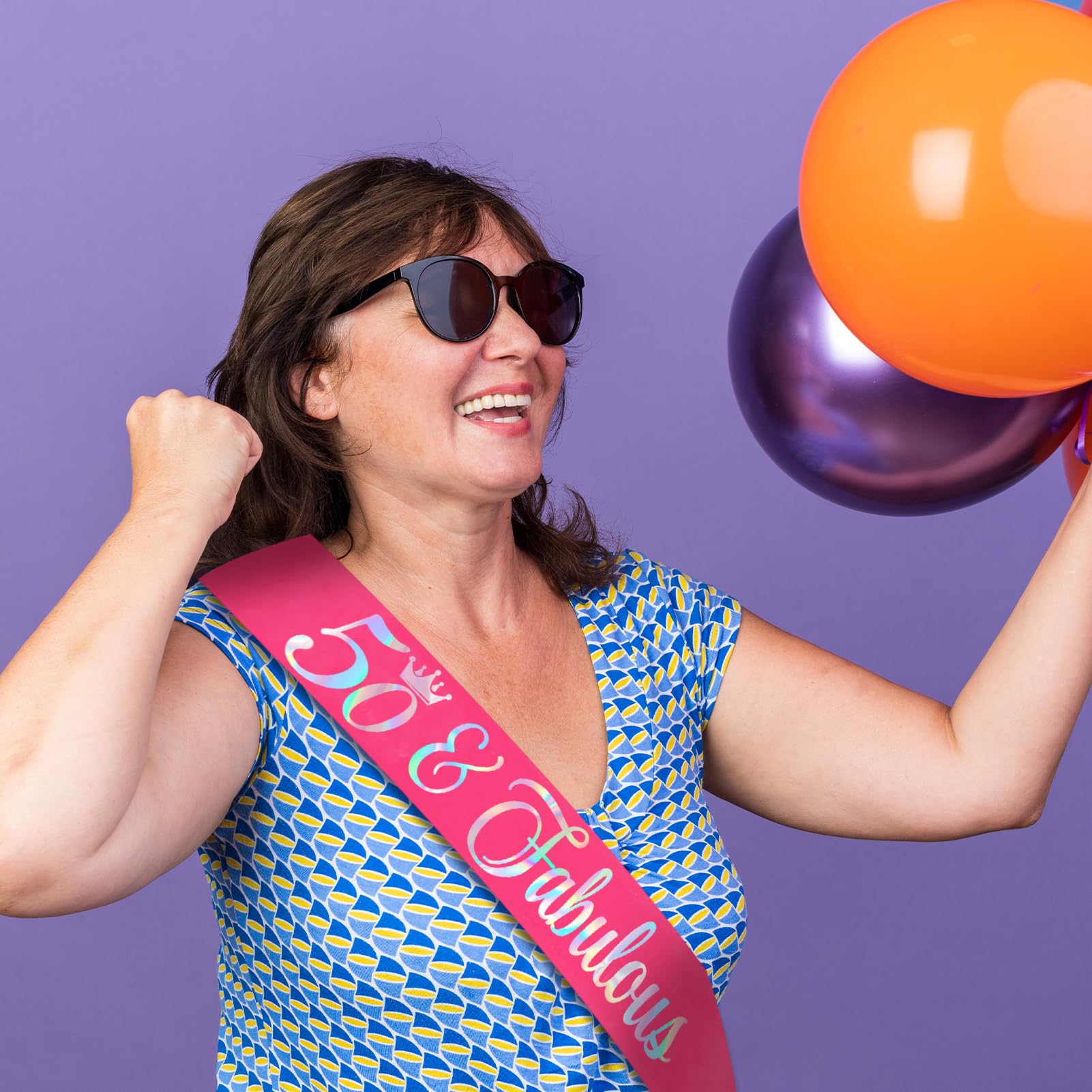 50th Birthday Decorations for Women: Our hot pink birthday sash has iridescent text ''50 Fabulous" in gorgeous & fun text style. You will be the star of the birthday party with a unique sash and it makes an ideal party prop for the birthday photos! The perfect accessory for your party outfit