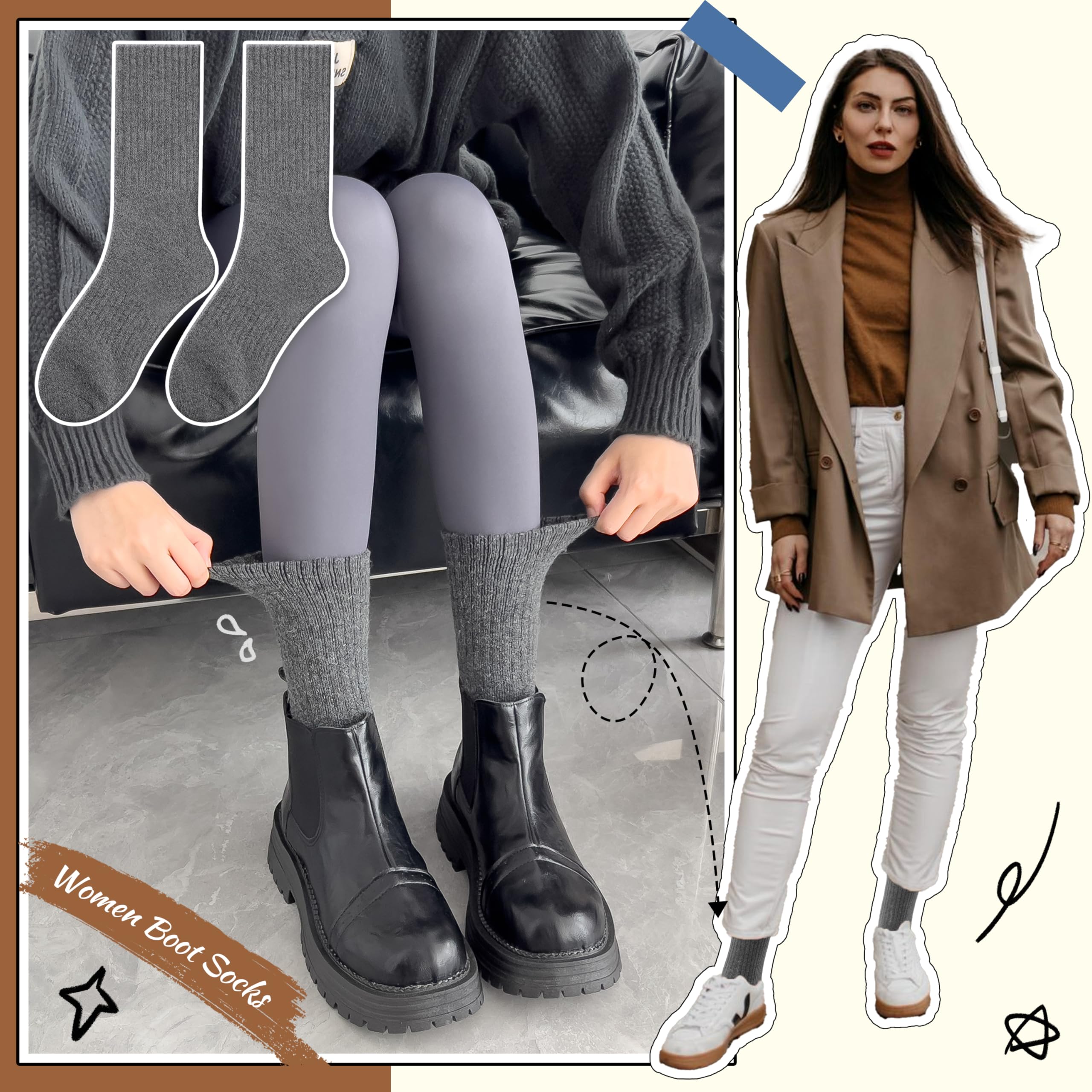 HIGH QUALITY : EBMORE fashion women wool socks are blend of 55% Wool, 25% Cotton, 15% Polyester, 5% Spandex. It’s a premium High Quality merino wool socks, so the socks is very soft, heavy but breathable, cozy, fuzzy inner lining and will keep your feet comfortable and warm.