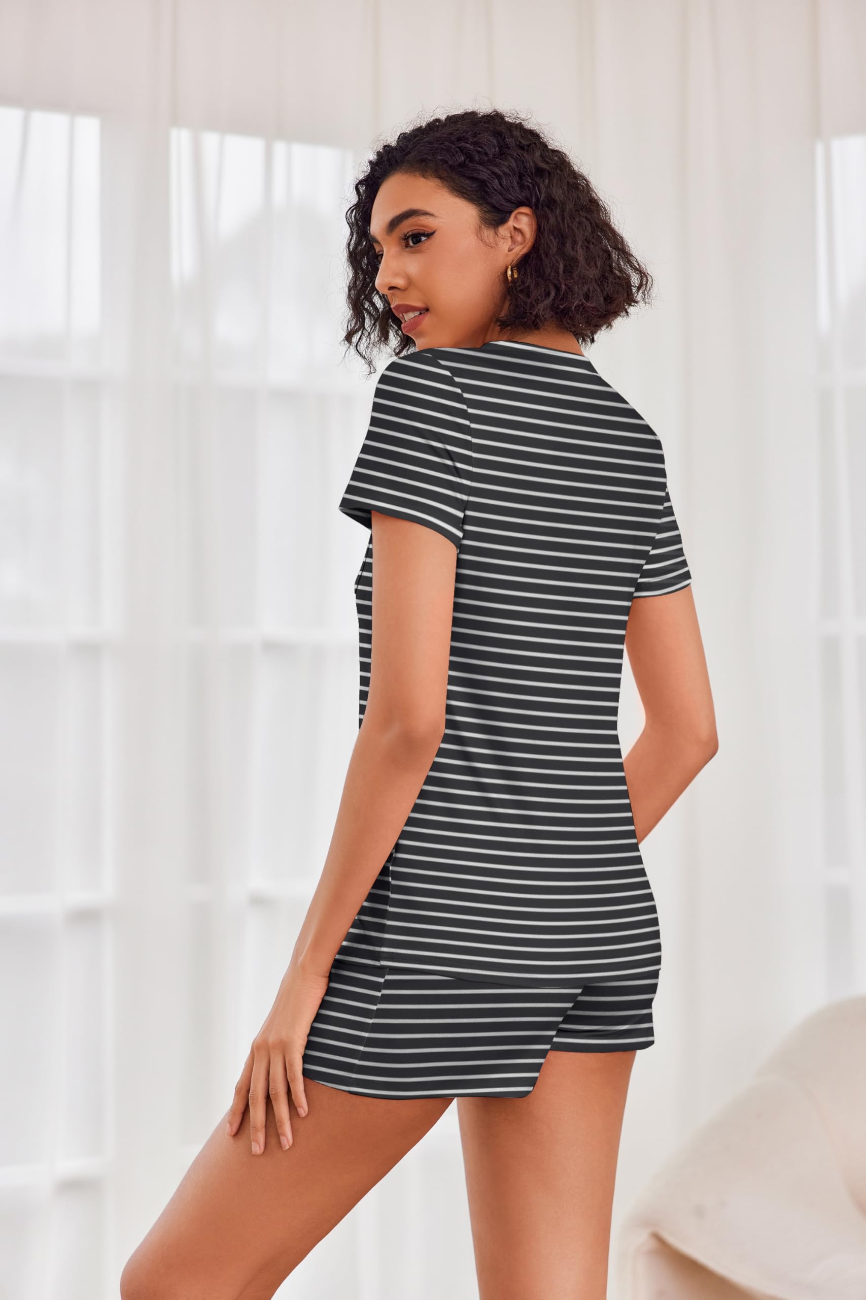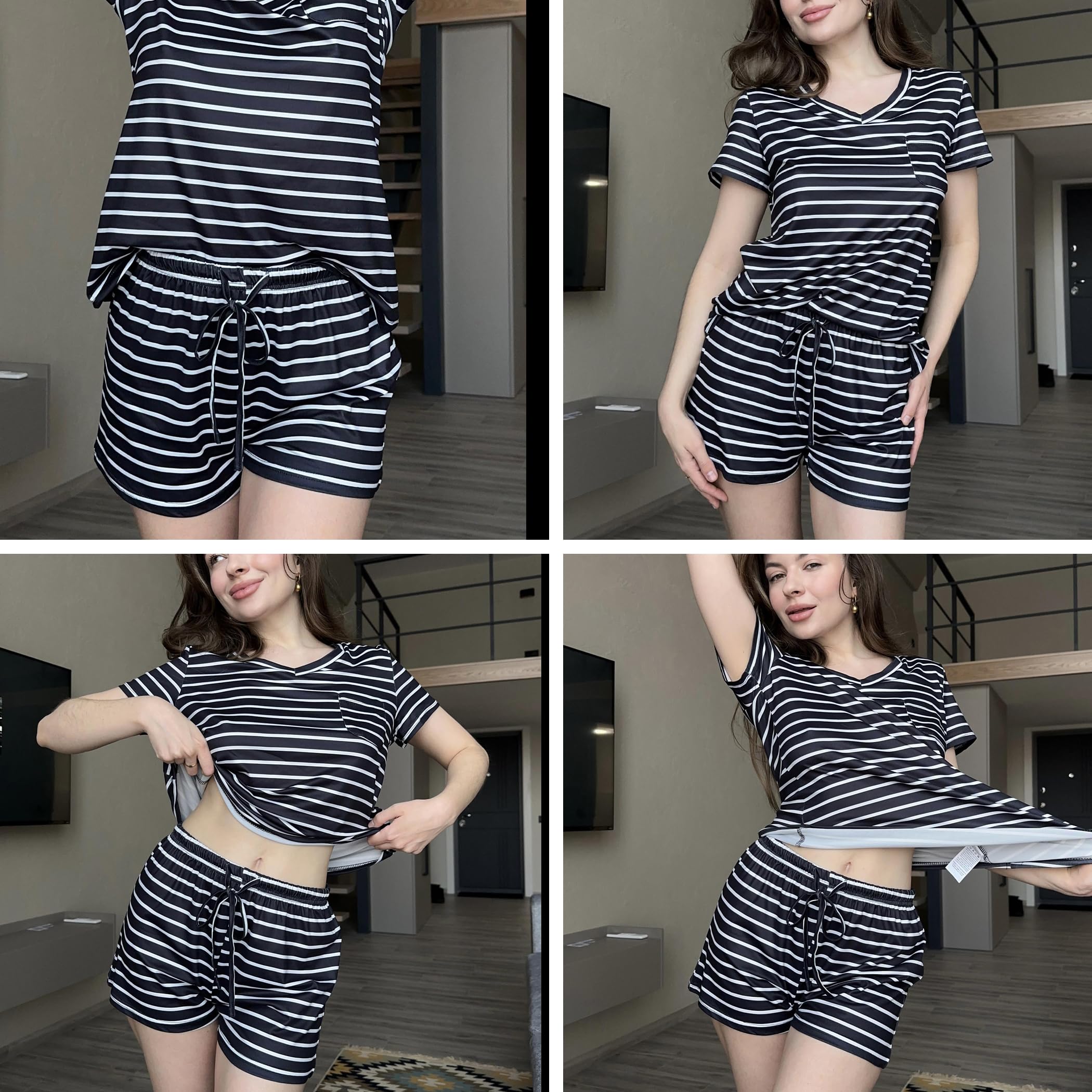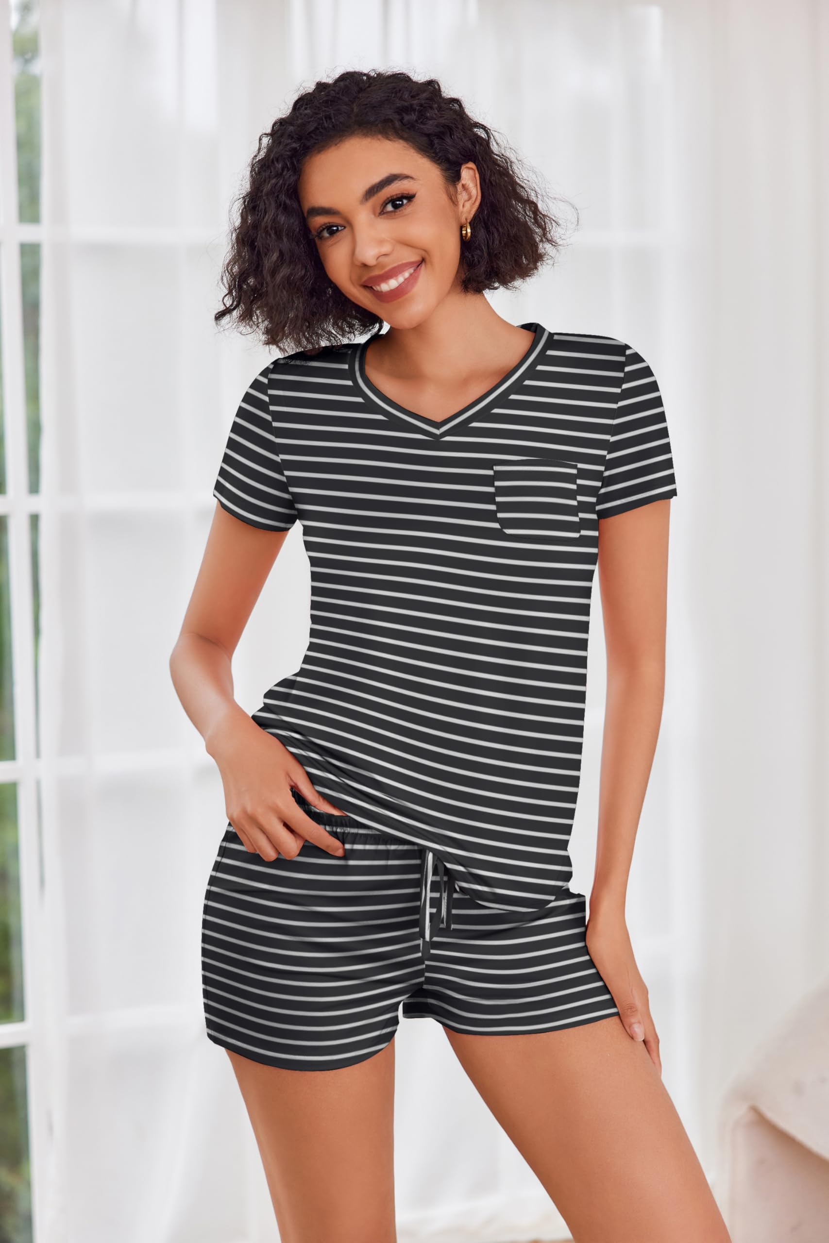 FEATURES: pajama sets for women 2 piece, pj sets for woman, V neck women's pajama sets, short sleeve T-shirt, drawstring elastic waist shorts.