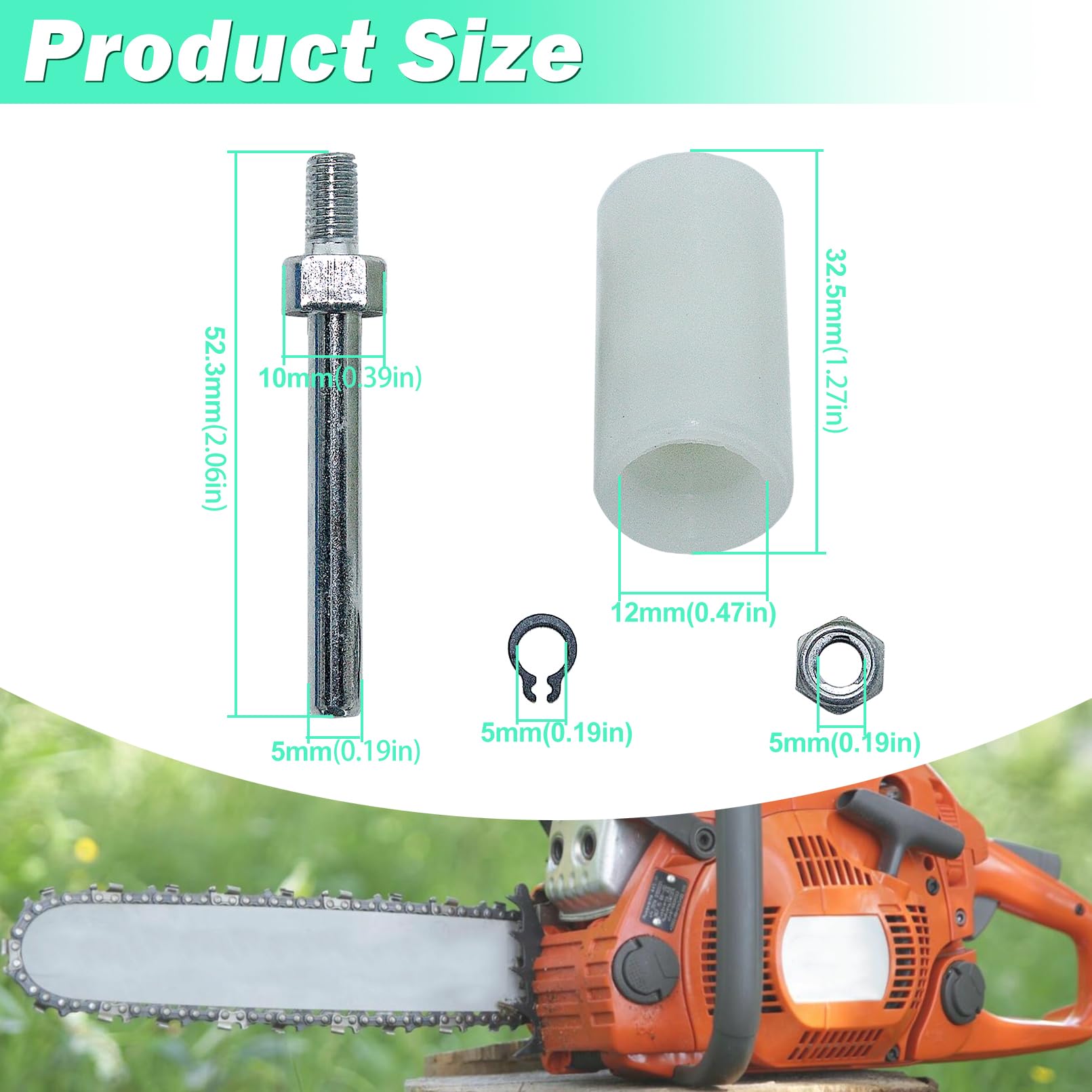 A Full Set of Tools:1 x Sprocket Cover, 2 x Felling Dogs (Outer and inner), 1 x Chain Catcher, 2 x Bar Nut.