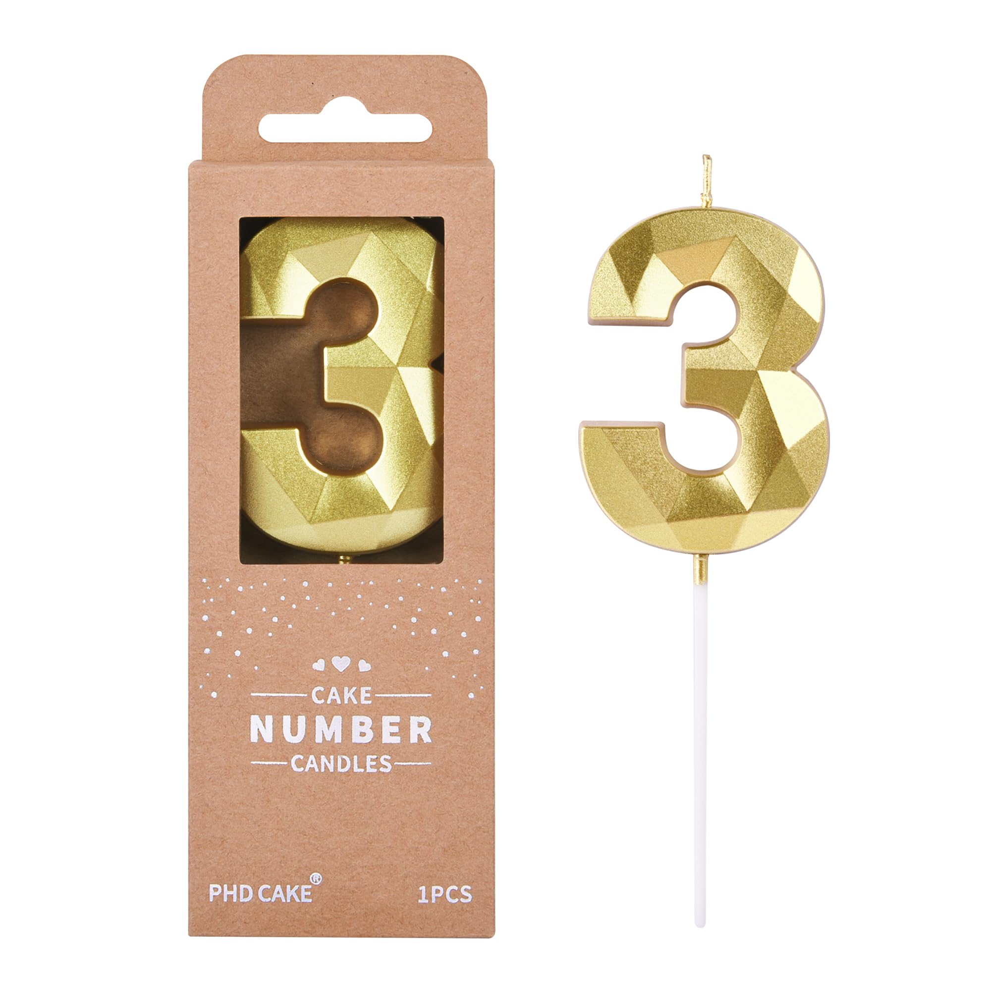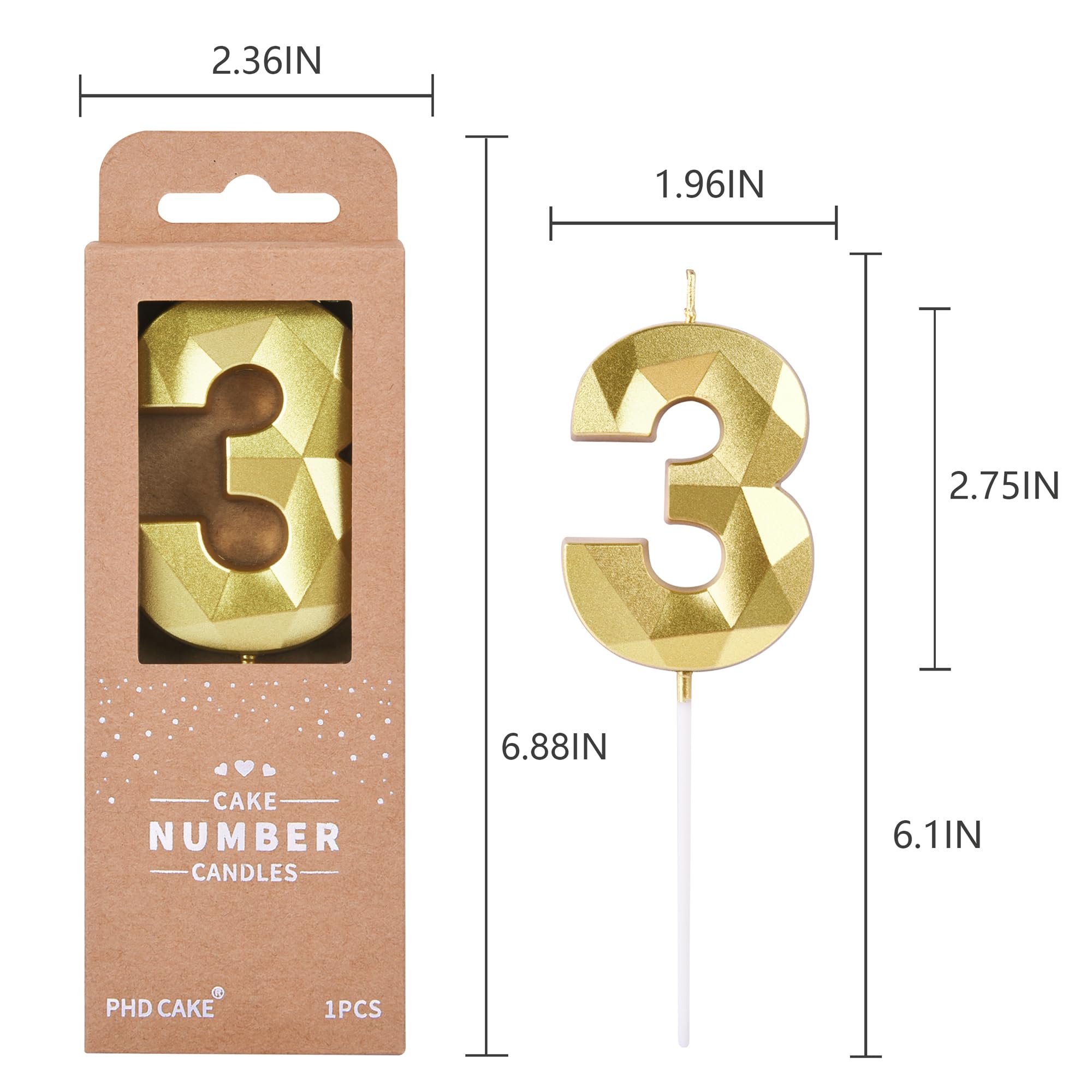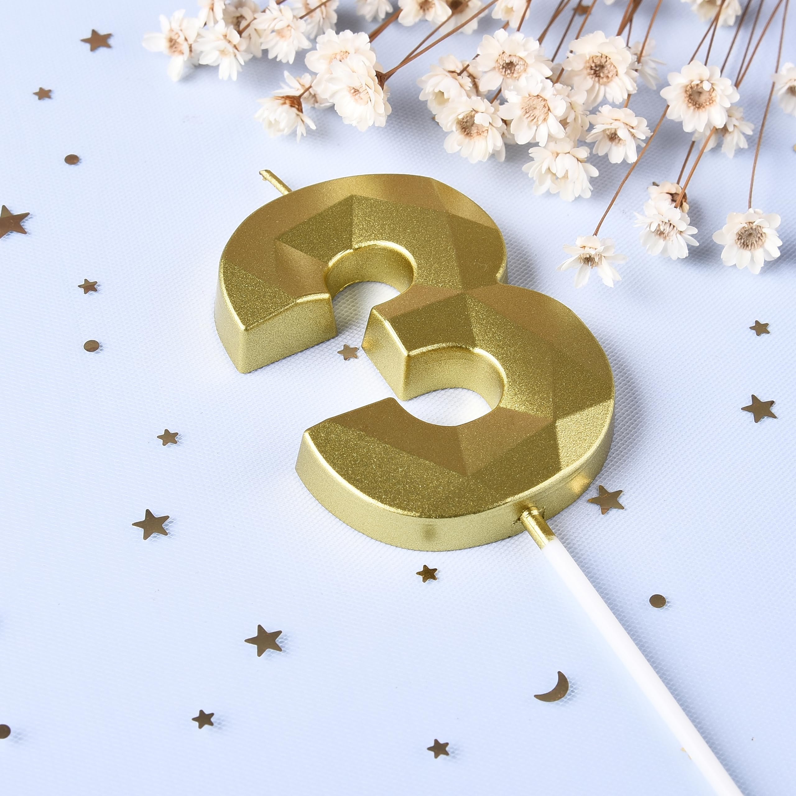 New: 2.76 Inch Large Crystal Gold 3 Number Birthday Candle designed to make your cake and birthday a unique and truly inspiring event.