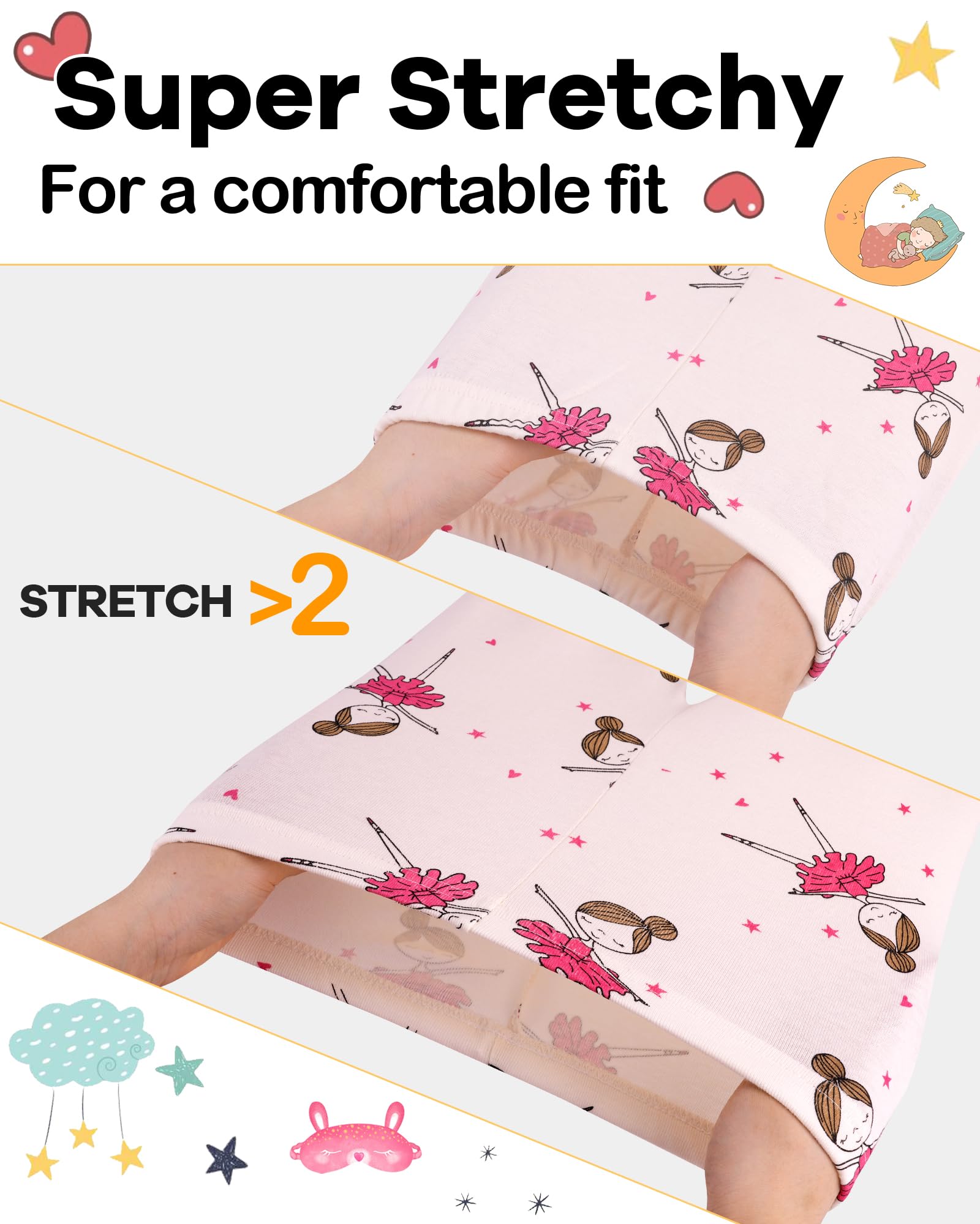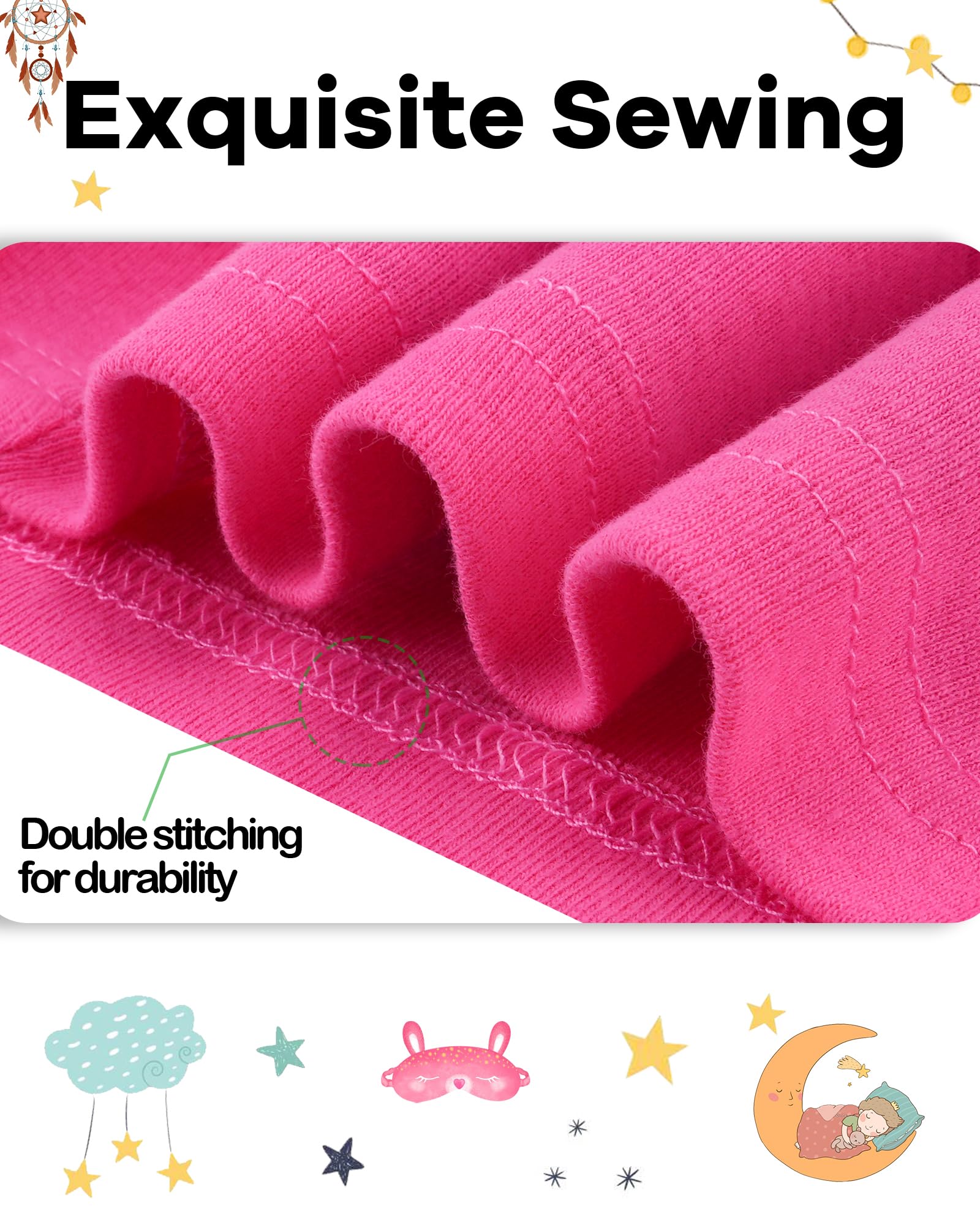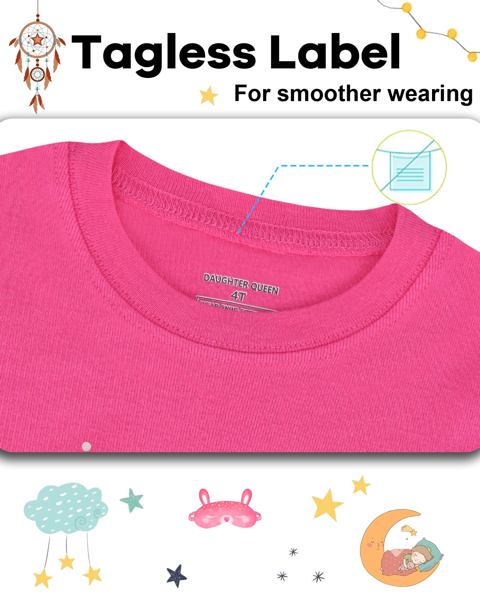 Caring Design: Tagless label, avoiding hurt caused by traditional one and protecting your little ones' delicate skin. Crew-neck is easy for your little one to wear or put off, feeling comfortable when wearing. Elasticized waistband, not only keeps everything in right place but also ensures a pleasant night that fits just right, keeping them comfy without being too tight