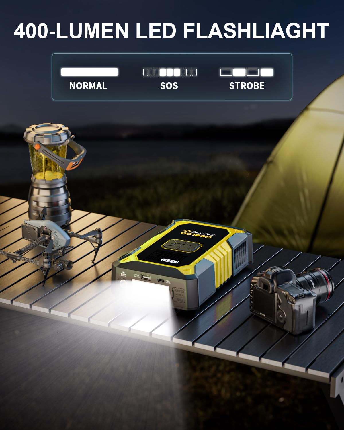 Powerful and Durable - The 3000 amp portable car battery jumper starter provides instant restart for your 12V dead vehicles, supporting engines up to 9.0L for gas and 6.5L for diesel . Even if the battery voltage is extremely low, simply press the "BOOST" button to forcefully jump start your car. With over 1000+ charge cycles, this jump box for car battery is built to withstand extreme weather conditions ranging from -4°F to 140°F.