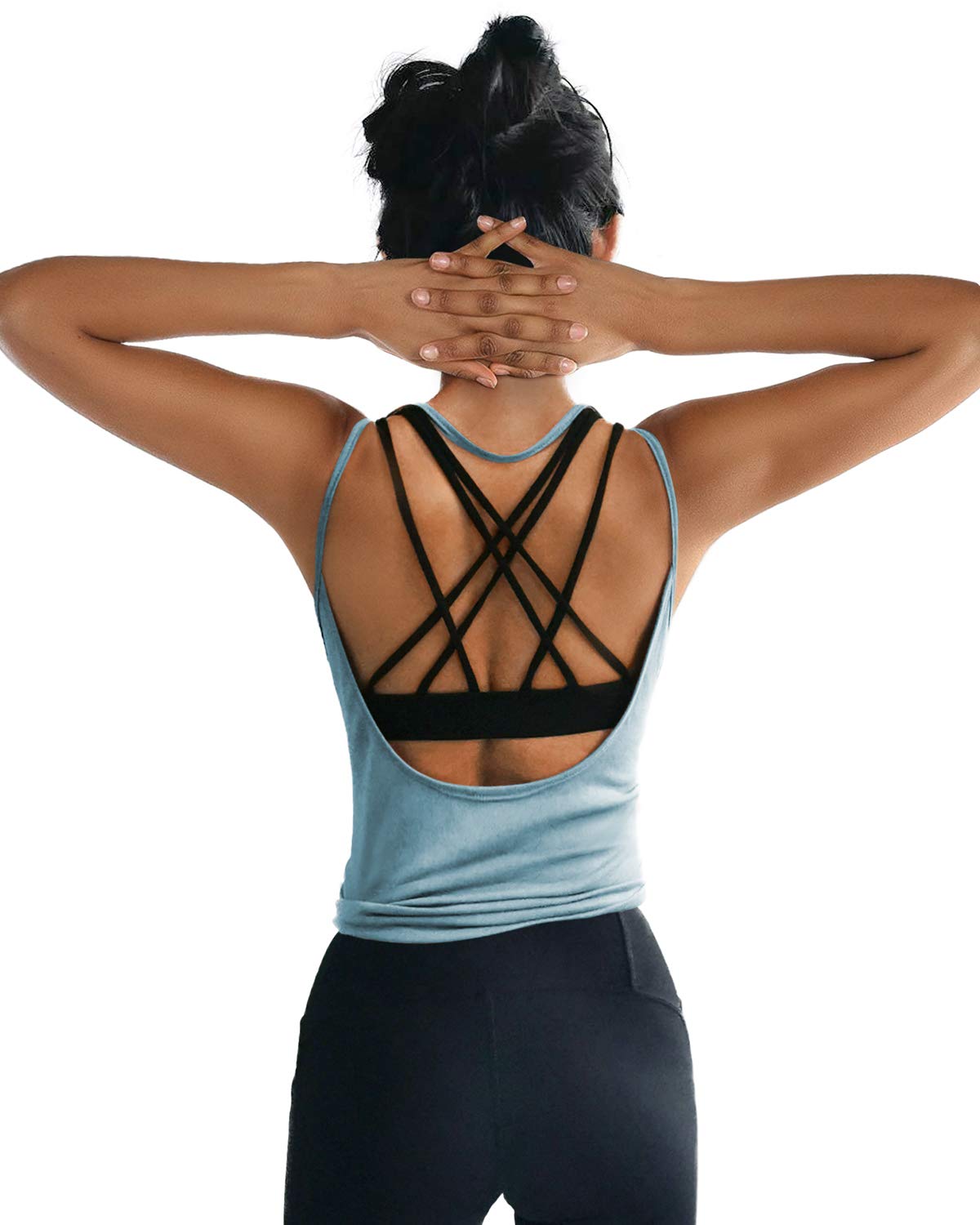 【YOUR EVERYDAY BRA】Unleash your inner goddess in the Crisscross Back Sports Bra! Whether it's for yoga, hiking, or a quick stretch, the scoop neckline and spaghetti straps ensure you stay supported all day long. This strappy sports bra, originally designed for yoga, doubles as a stylish bralette that you can wear under any outfit. Pair it with biker shorts or yoga leggings for a breathable fitness look that will elevate your workout routine.