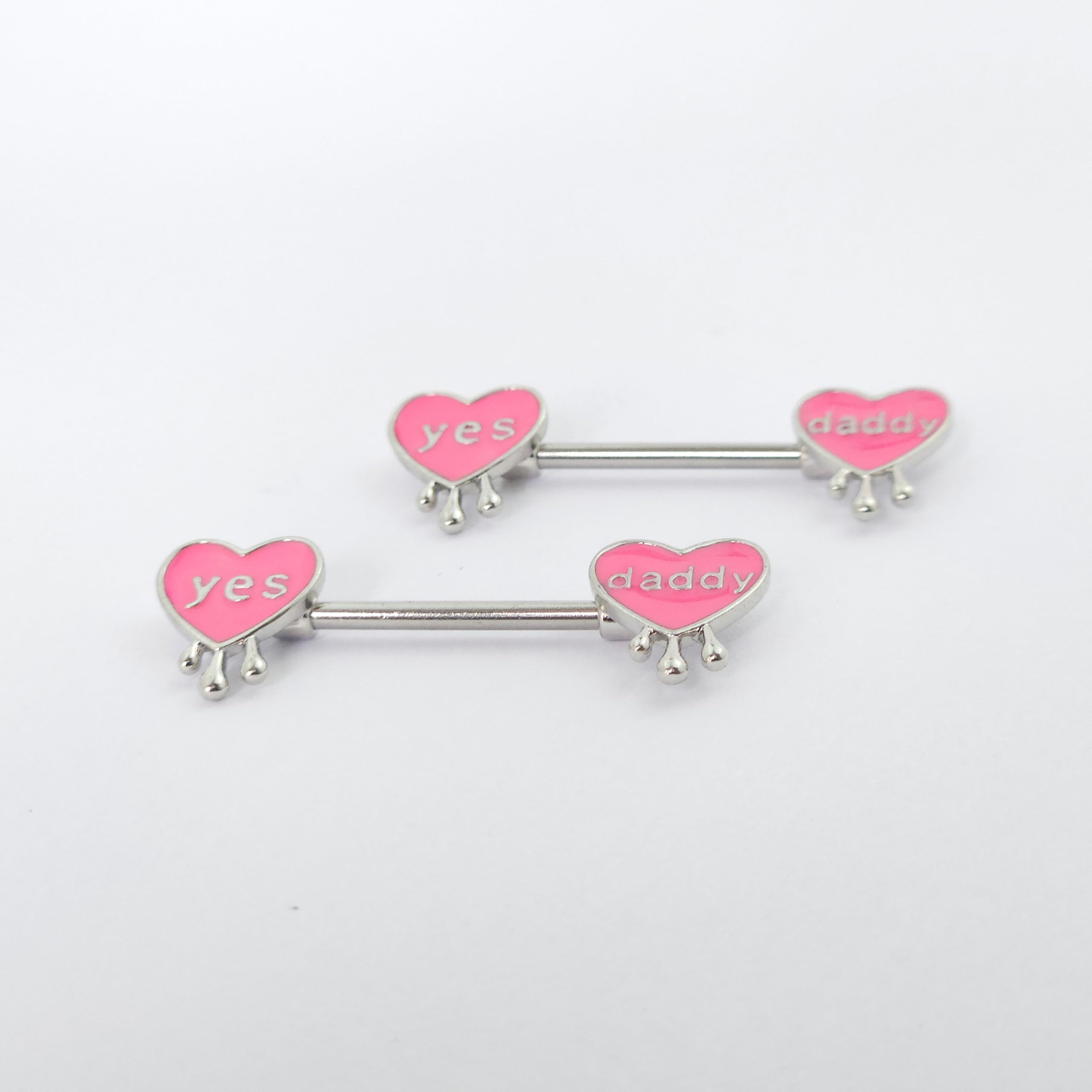 STYLE: Barbell-style nipple rings with decorative elements, perfect for expressing personal style
