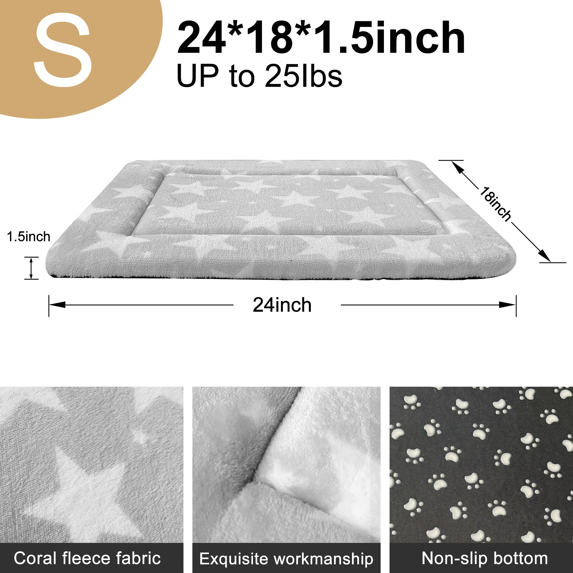 Size Details: Transform your pet's comfort with our S size dog crate pad, measuring approximately 24"L x 18"W x 1.5"H. Perfectly designed for small dogs up to 25 pounds, it offers a plush, supportive surface that’s just the right thickness for a cozy rest.