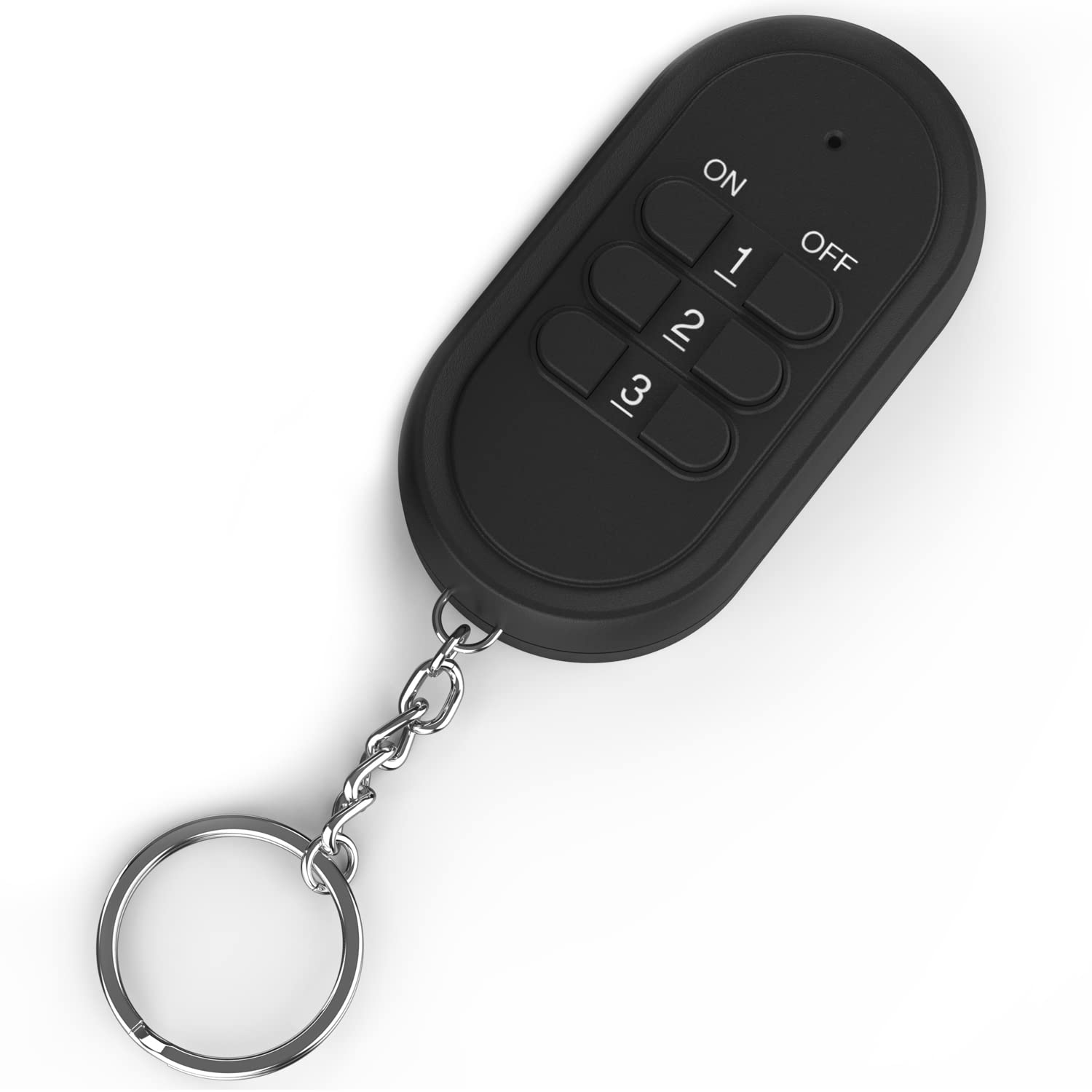 [REMOTE CONTROL FROM ANY CORNER IN YOUR HOUSE] The remote control sends a strong signal that will reach 100ft/30m away and pass through barriers like furniture, doors, and walls. Even if the wireless outlets are in a hard-to-reach area or a remote location in the yard, the control is always just one simple click from the comfort of your couch. The remote is compact and fits in a pocket or purse, or on your key chain.