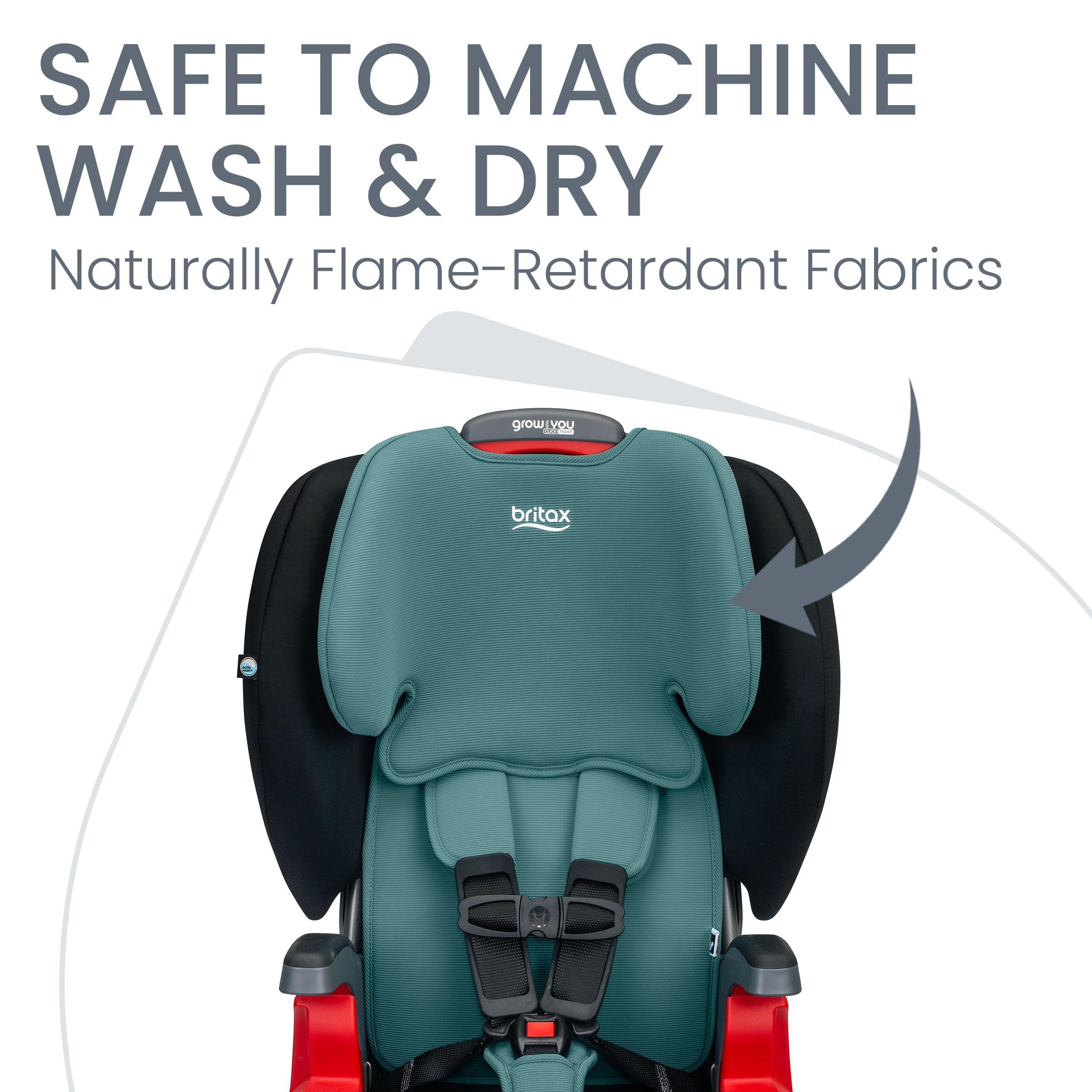 Choose a toddler car seat that grows with your child from toddler to big kid age with the Britax Grow With You(TM) ClickTight(R) harness-2-booster car seat. This high back booster seat starts as a 5-point harness car seat and converts into a belt-positioning booster that works with your car's seat belt. Install with confidence, every time. With ClickTight Technology, you know itβs right in 3 easy steps: open, buckle and close. Quickly adjust the 9-position harness and headrest using just one hand for the proper fit as your child grows. Once theyβre ready to use the seat belt, the 5-point harness tucks away, transitioning the seat to a belt-positioning booster. The color-coded belt guides help you and your child route the seat belt through the right paths for a secure fit. This forward facing car seat is made with naturally flame retardant fabric and foam that is safe to machine wash and dry. SafeCell(R) Technology in the base acts as a crumple zone to help absorb crash energy for additional protection for your growing child. This booster features armrests, 2 cup holders and harness comfort pads, so even big kids enjoy the ride.
