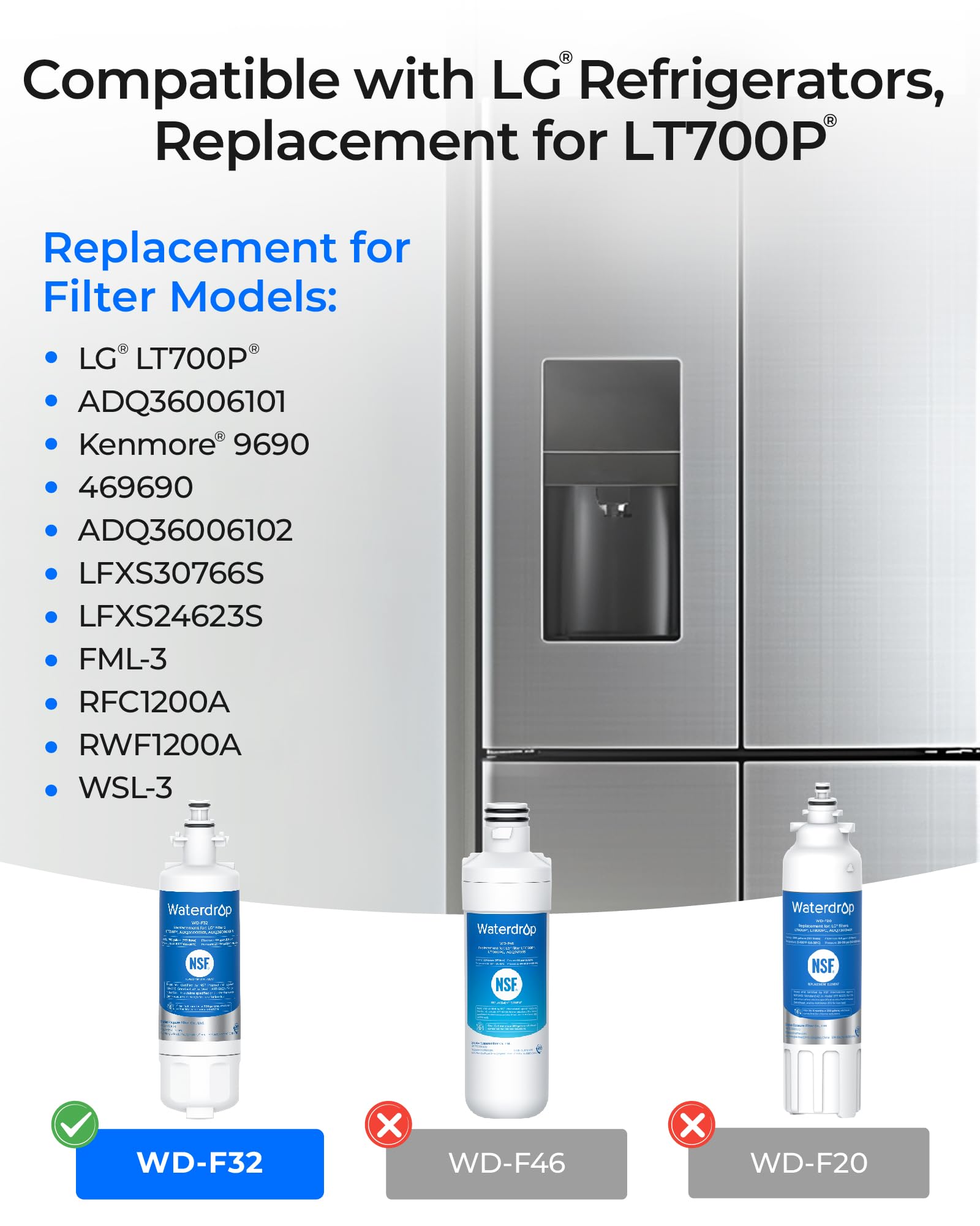 [Replacement for models] This filter replacement for: LG LT700P, LT700PCS, ADQ36006101, ADQ36006101-S, ADQ36006101S, ADQ36006102, ADQ36006102-S, ADQ36006102S, 9690, 46-9690, KENMORE 469690, WSL-3, WF700, WLF-01, RFC1200A, CWMF041, BLS LT700P, APF1400, PL-500, WF-117, R-9690, WD-F32, OP-1200A.