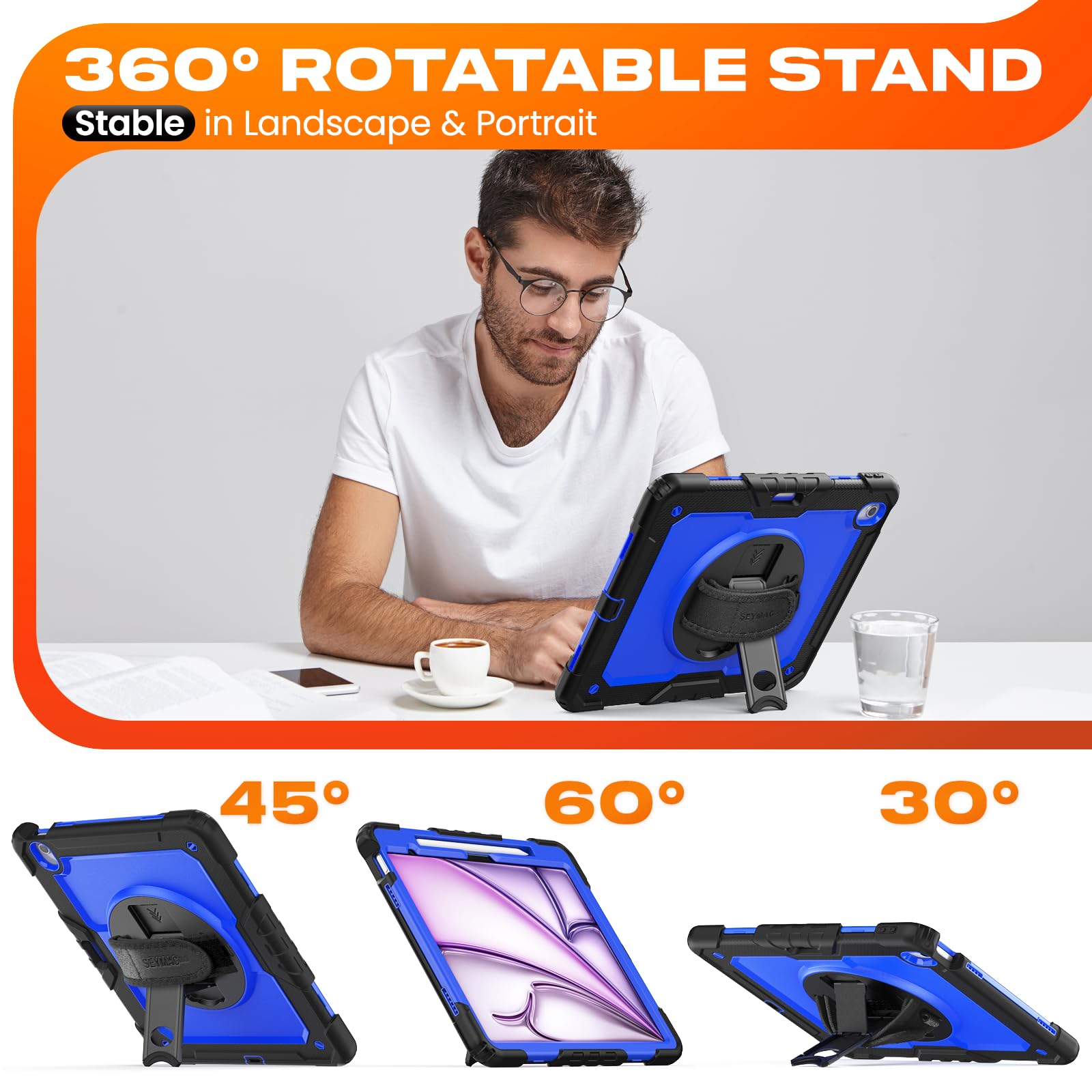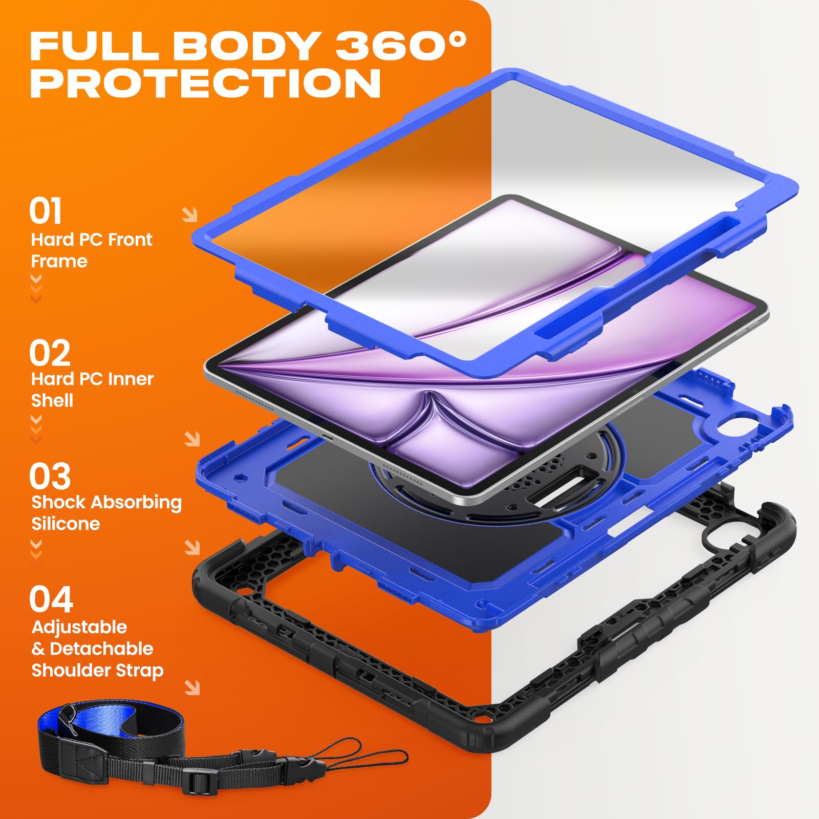 [Adjustable Hand & Shoulder Strap] Hold device comfortably one-handed with soft hand strap for presentations, navigation, document scanning; Adjustable,Detachable shoulder strap for a wide-range of users, carry your device by side and hands-free at all times, case for iPad Air 13 inch M4 M3 M2 suited for business/travel
