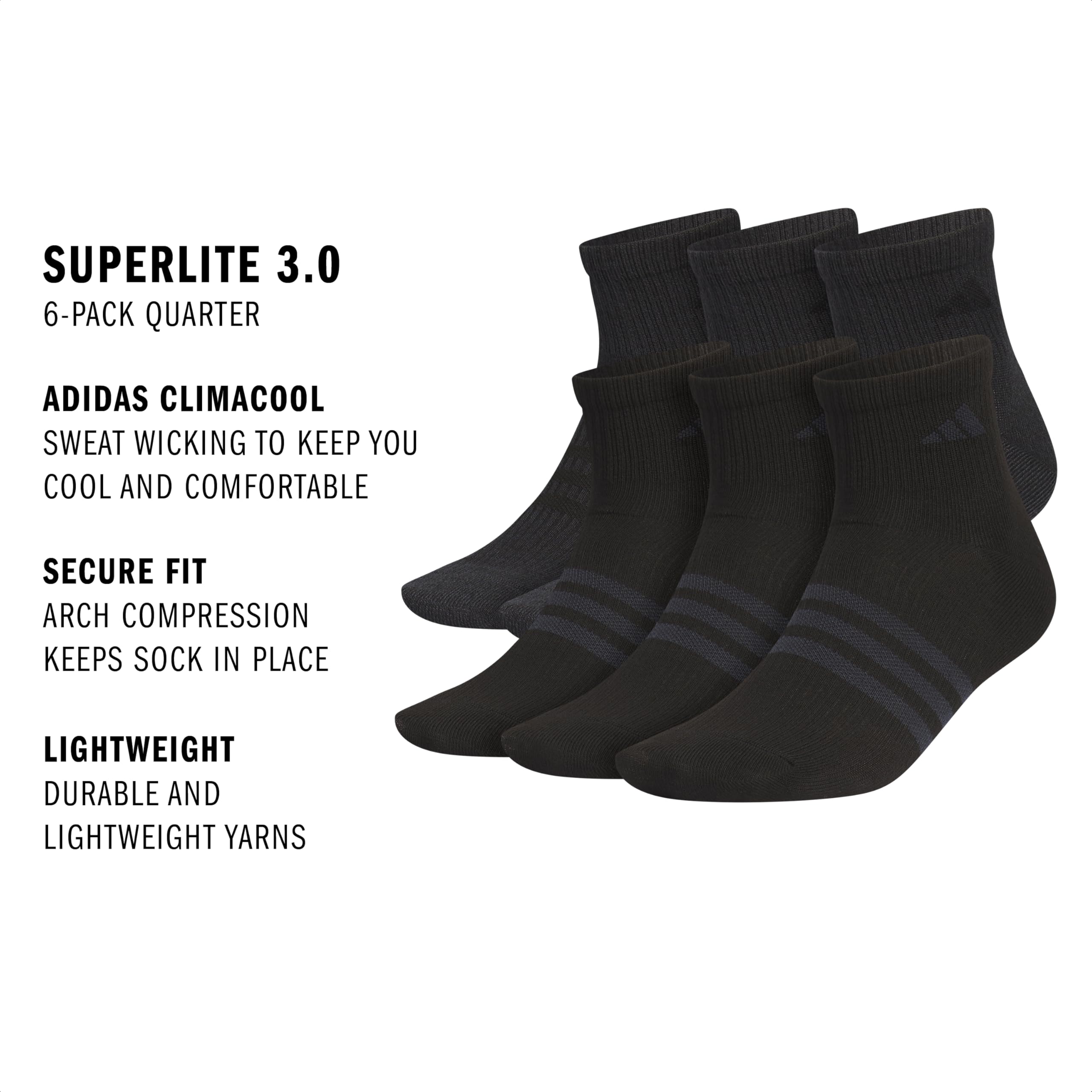 Description Your feet are your foundation. Treat them right with these super-light men's adidas socks. Lightweight and long-lasting, they hug your feet with a secure fit and supportive arch compression, making them suitable for various activities and great as tennis socks men and golf socks for men. Don't worry about breaking a sweat. These men's athletic socks feature moisture-wicking yarn and can be used as mens work socks. Whether you're looking for mens quarter socks or sport socks for men, these socks provide arch support compression and moisture wicking for your feet.