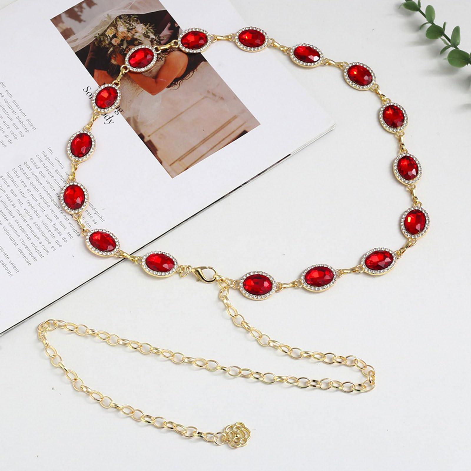 Classical Rhinestone Chain Belt: This woman's belt adopts 1 inch gem chain belt. The total length of the jewelry chain is 115cm=45inch, which is suit for standard size (small-large) to plus size.