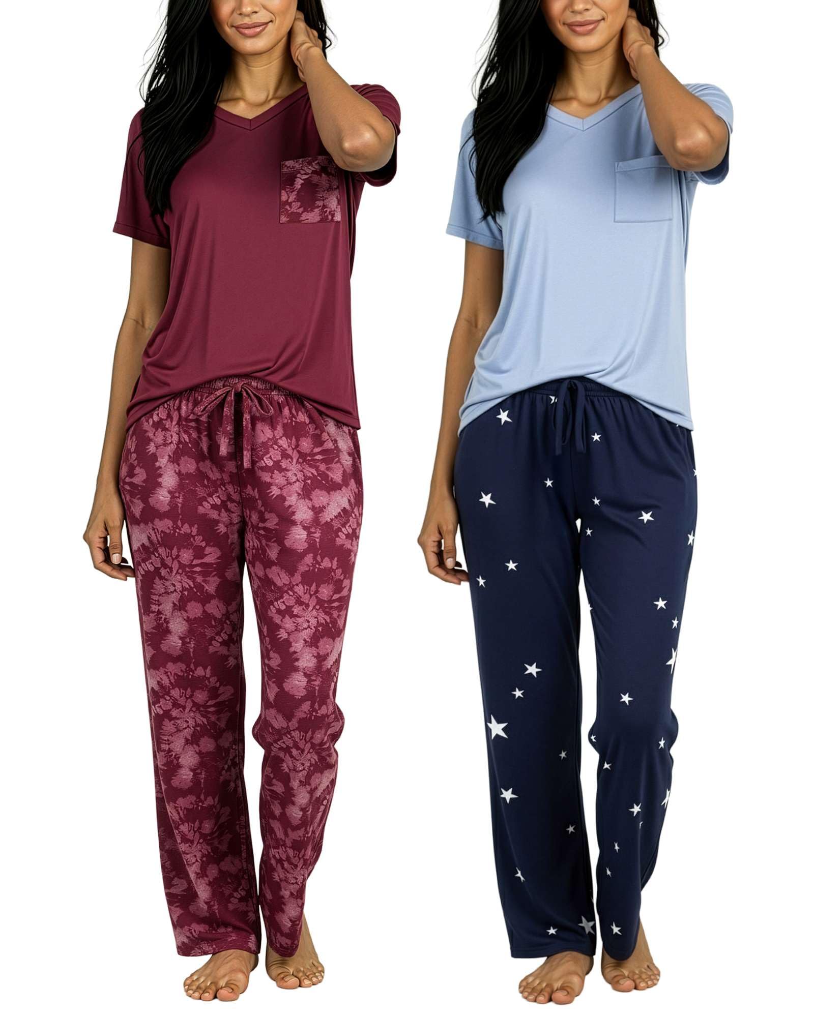 SOFT & COMFY WOMENโS SLEEPWEAR: Real Essentials 2 Pack Womenโs Pajama Sets deliver everyday comfort with smooth, breathable fabric that feels soft on the skinโperfect for lounging, relaxing, or sleeping in style.