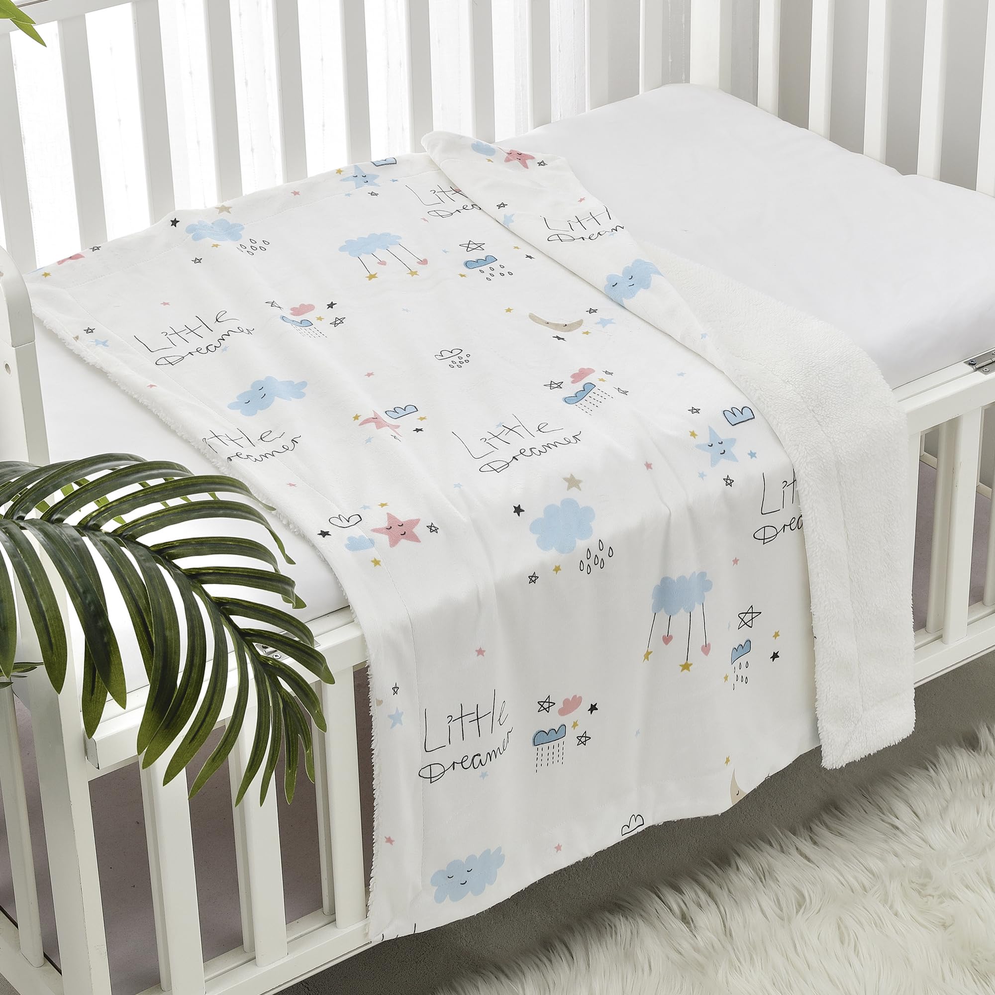 Premium Dual-Layer Fabric – Ultra-soft mink on one side and cozy Sherpa fleece on the reverse for extra warmth and comfort. Hypoallergenic and gentle on baby’s delicate skin.