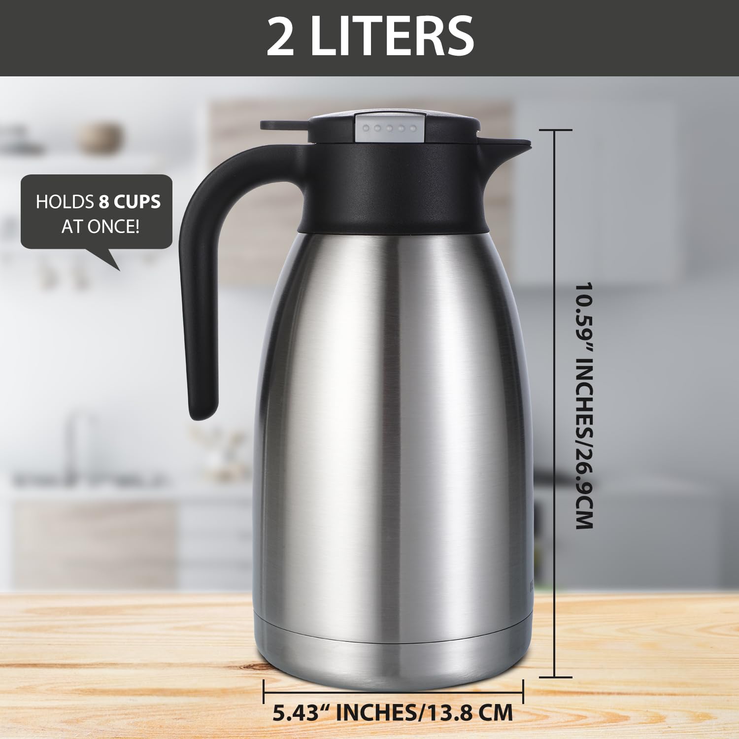 DURABLE STAINLESS STEEL: Made from high-quality 18/8 stainless steel, this carafe is built to last and resist rust and corrosion.