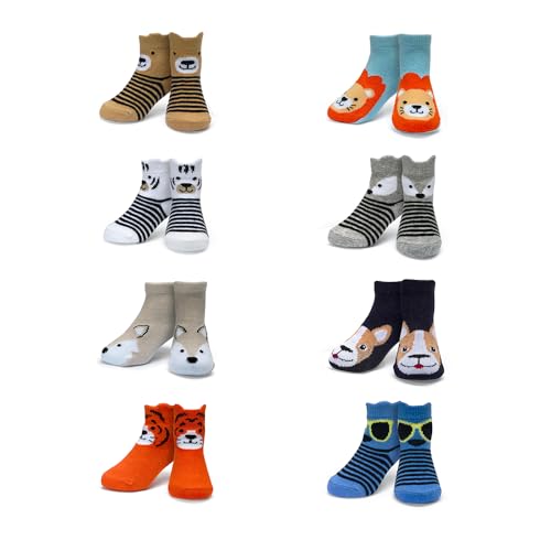 Description Little Me animal themed baby boy socks, 8-pack, keep your baby's feet warm while looking adorable. Made from soft, high-quality fabric, the warm infant socks, designed to last, cover the ankle for a secure, snug fit.