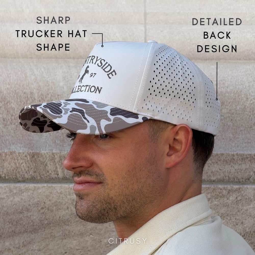 [ QUALITY + READY TO GIFT] - Durable. Versatile. Superior. These breathable hats for men are the ideal blend of style and practicality as a men's golf hat, a standout among sweatproof hats. As both a golf trucker hat for men and athletic hats for women, the classic-designed, embroidered finish hats are the perfect premium gift.