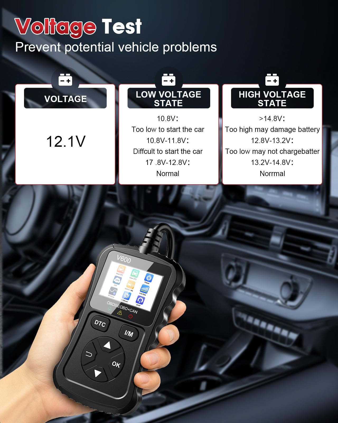 Smart Upgrade: Unlike ordinary OBD2 scanners, this upgraded car accessories includes a real-time voltage test function, allowing you to monitor your vehicle's electrical system and prevent potential problems. The built-in power indicator light ensures a stable connection and keeps you informed of the scanner's operating status. The advanced enhanced chip greatly improves data processing capabilities, handling faults in a smoother way, reducing waiting time and improving the efficiency of repairs and inspections. These intelligent enhancements make troubleshooting more precise and efficient, giving you better control over the health of your vehicle.