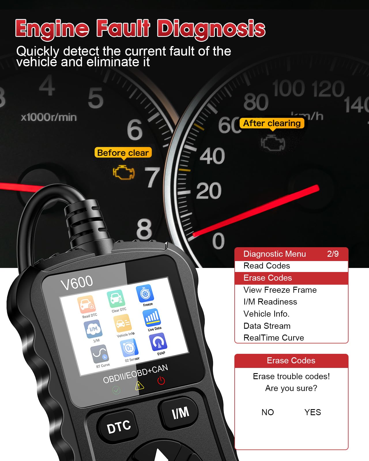 Comprehensive Vehicle Diagnostics: This feature-rich code reader for cars and trucks provides comprehensive vehicle diagnostics with a massive 30,000+ fault code database, allowing you to easily and accurately read and clear engine fault codes. It supports multiple functions such as real-time data streaming and graphical analysis, freeze frame viewing, MIL status check, I/M readiness monitoring, etc. Its stable performance ensures accurate diagnosis of a wide range of vehicle faults, making it an ideal choice for home DIY repairs and auto repair shop technicians.