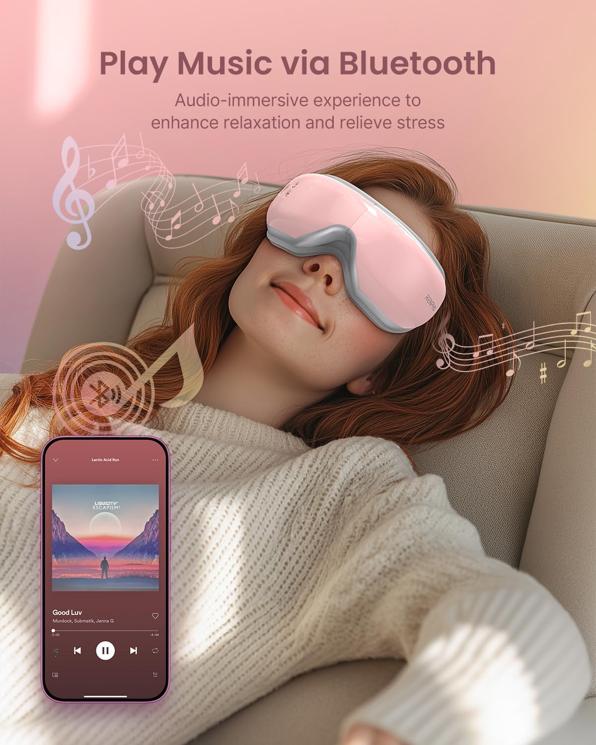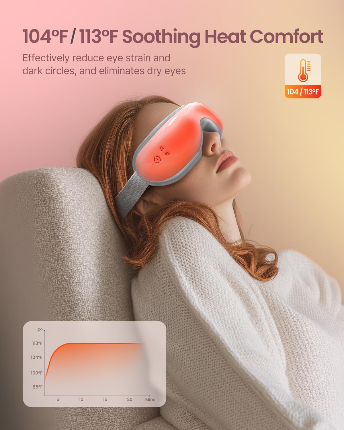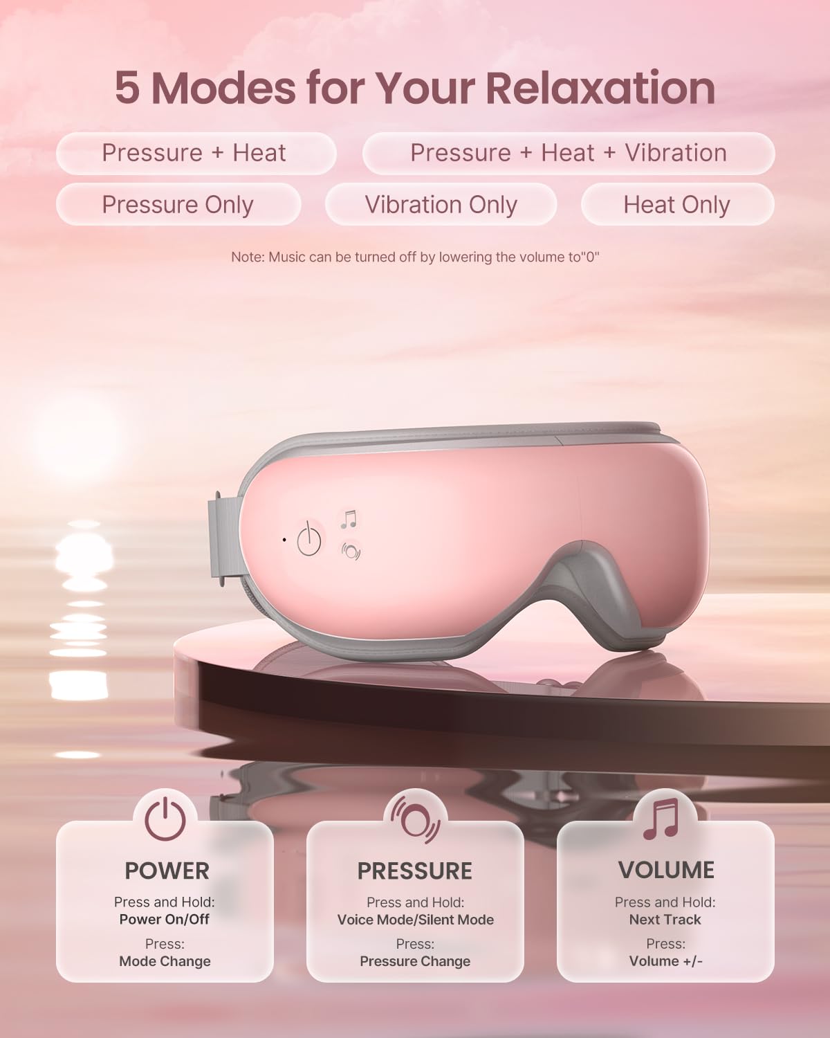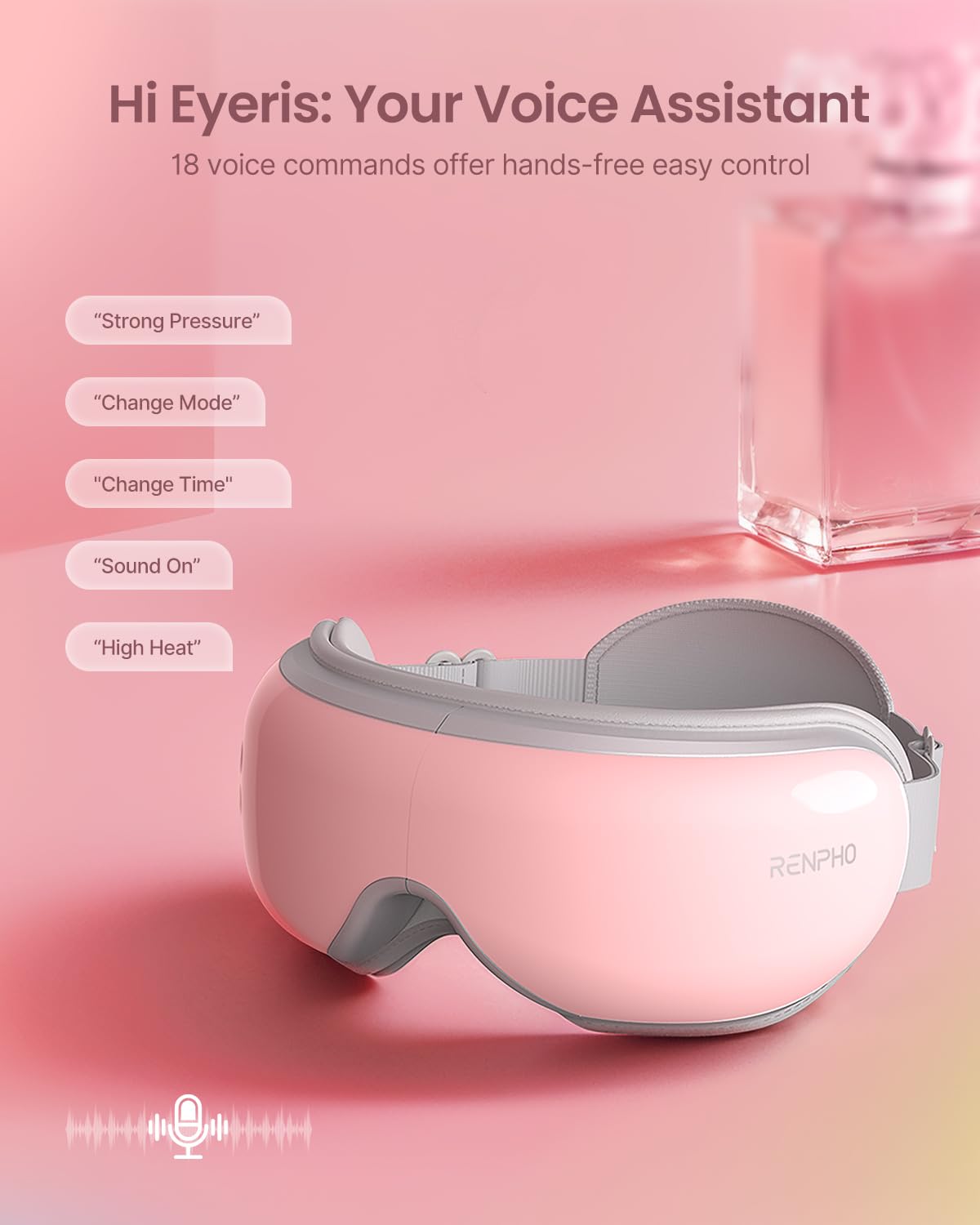 Please note:1. Utilizing advanced air compression and vibration technology, RENPHO Eyeris 1 eye mask is designed to effectively relax and rejuvenate the eye area.2.The product will cause normal noise <45dB during use 3. You can adjust to low compression when you feel too strong 4. Please find out if you are allergic to protein leather before use. 5.This product is not suitable for individuals who have undergone eye operations, have retina conditions, cataracts, glaucoma, etc.